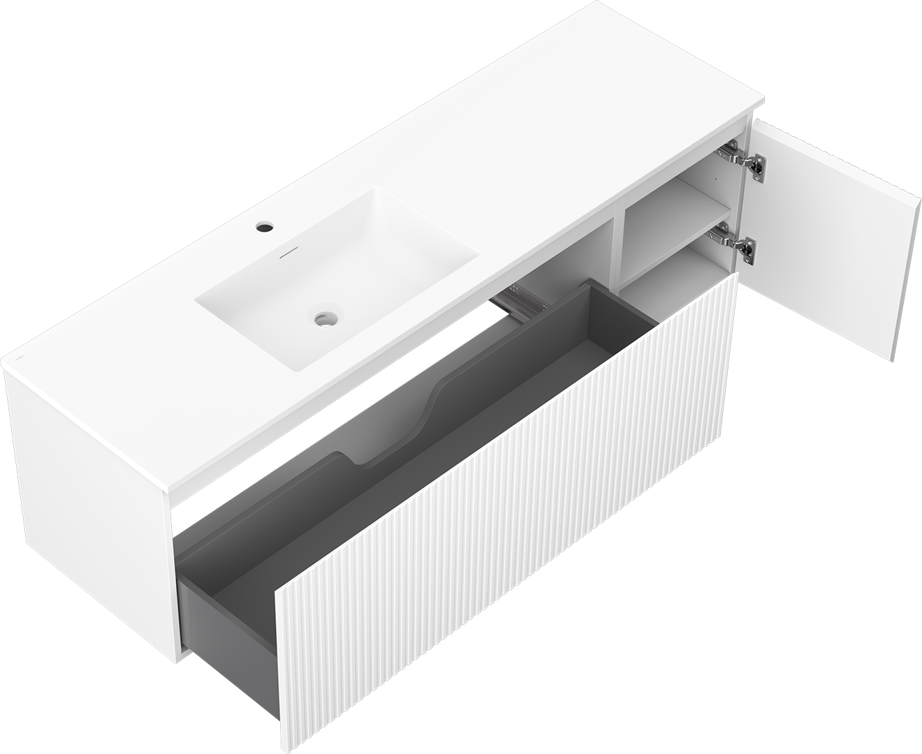 Mexen Rivel armoire de salle de bain 160 cm avec lavabo Otis gauche, 1S, 1D, rainuré, blanc mat - 91A23-16047-3-BBFF01-W18L01