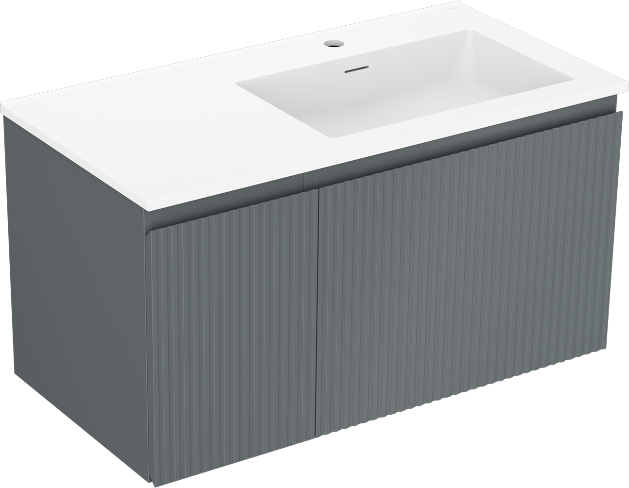 Mexen Rivel meuble de salle de bain 90 cm avec lavabo Otis à droite, 1S, 1D, rainuré, graphite mat/blanc mat