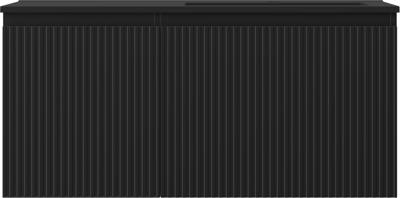 Mexen Rivel meuble de salle de bain 100 cm avec lavabo Otis à droite, 1T, 1P, rainuré, noir mat - 91A23-10047-3-BBFF71-W18P71