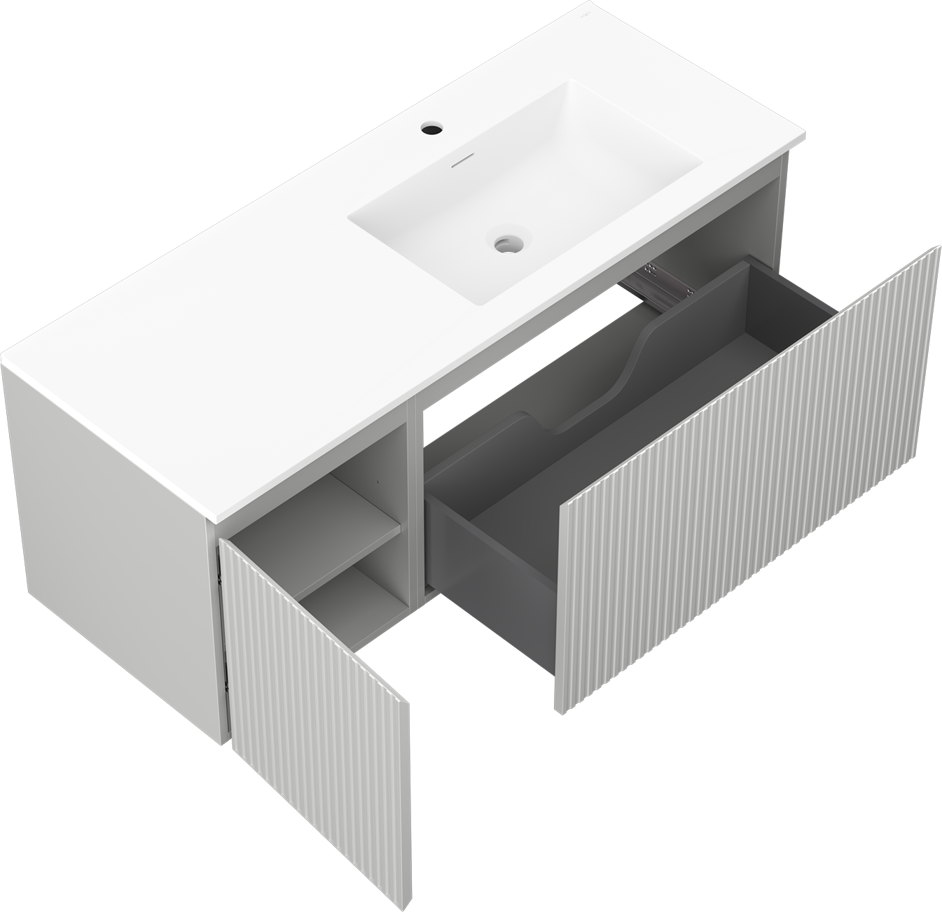 Mexen Rivel meuble de salle de bain 120 cm avec lavabo Otis à droite, 1T, 1P, rainuré, gris mat/blanc mat