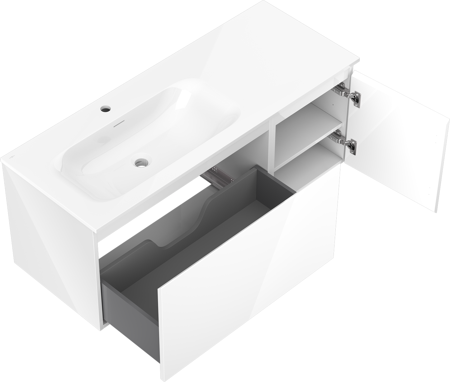 La découpe dans le tiroir est conçue de manière à accueillir le siphon, qui est nécessaire dans les installations de lavabo. Ainsi, le meuble peut être installé de manière pleinement fonctionnelle, sans devoir renoncer à l'espace du tiroir au profit de l'installation.