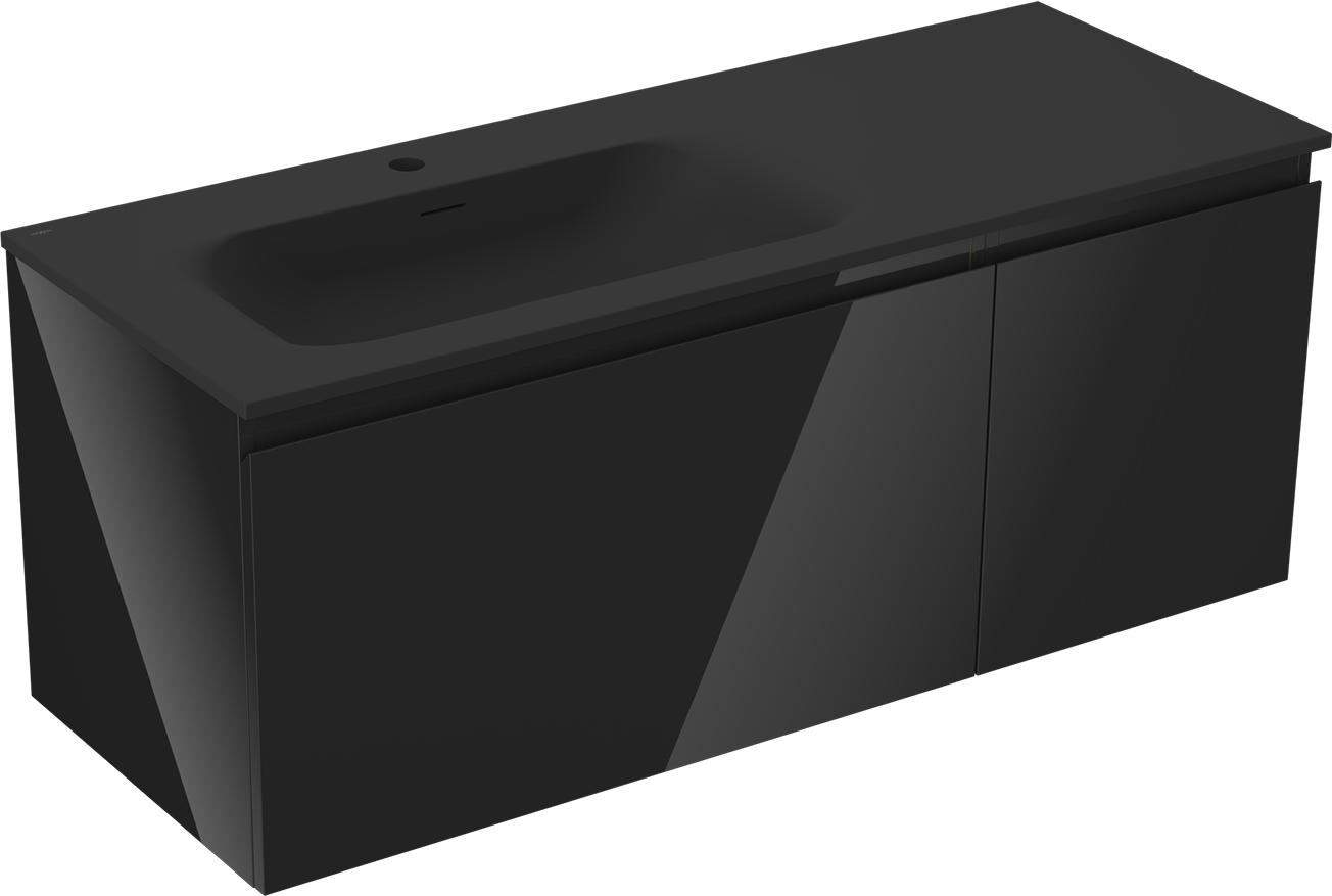 Mexen Orio meuble de salle de bain 120 cm avec lavabo Vela gauche, 1S, 1D, noir brillant/noir mat - 91A13-12047-3-BBFF70-W23L71