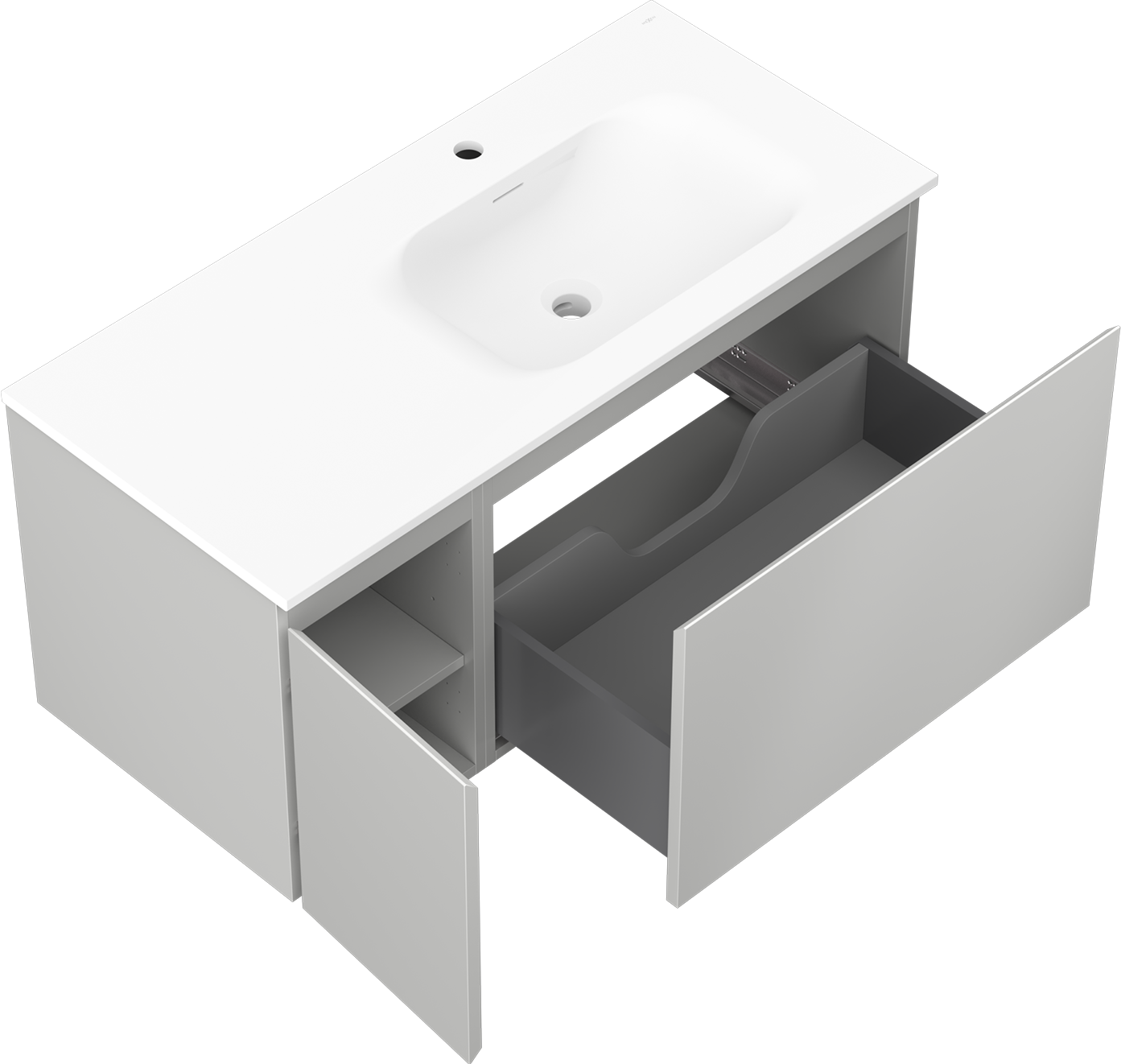 Mexen Orio meuble de salle de bains 100 cm avec lavabo Vela droit, 1S, 1D, gris mat/blanc mat - 91A13-10047-3-BBFF62-W23P01