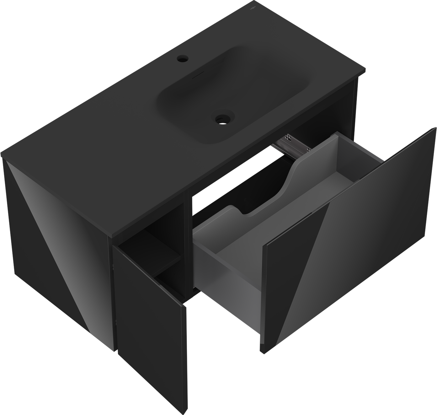 Mexen Orio armoire de salle de bain 100 cm avec lavabo Vela à droite, 1S, 1D, noir brillant/noir mat