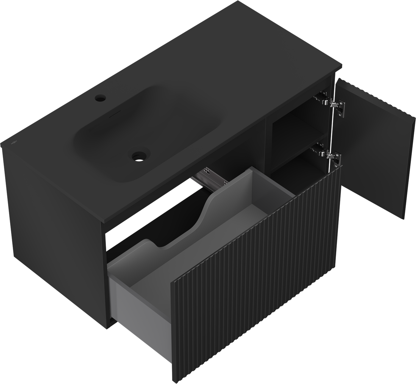 Mexen Rivel meuble de salle de bain 100 cm avec lavabo Vela gauche, 1S, 1D, rainuré, noir mat - 91A23-10047-3-BBFF71-W23L71