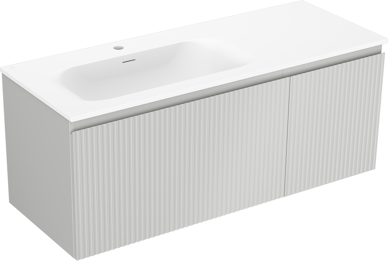 Mexen Rivel armoire de salle de bain 120 cm avec lavabo Vela gauche, 1T, 1P, cannelée, gris mat/blanc mat