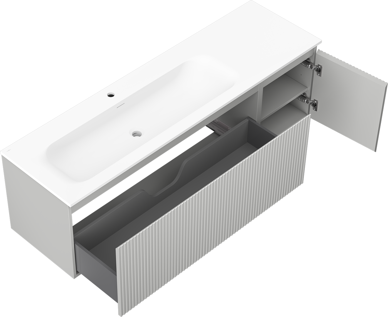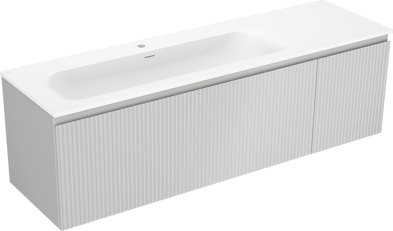 Mexen Rivel meuble de salle de bain 160 cm avec lavabo Vela gauche, 1S, 1D, rainuré, gris mat/blanc mat
