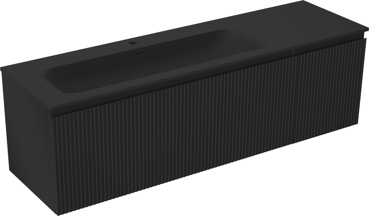 Mexen Rivel armoire de salle de bain 160 cm avec lavabo Vela gauche, 1S, 1D, rainuré, noir mat - 91A23-16047-3-BBFF71-W23L71