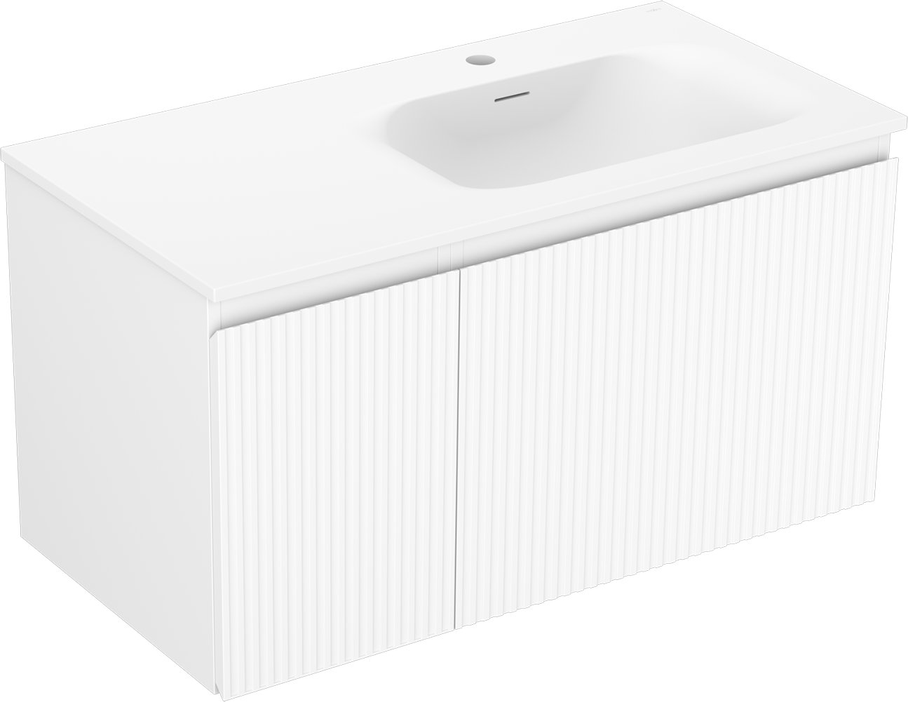 Mexen Rivel meuble de salle de bains 90 cm avec lavabo Vela à droite, 1S, 1D, rainuré, blanc mat - 91A23-09047-3-BBFF01-W23P01