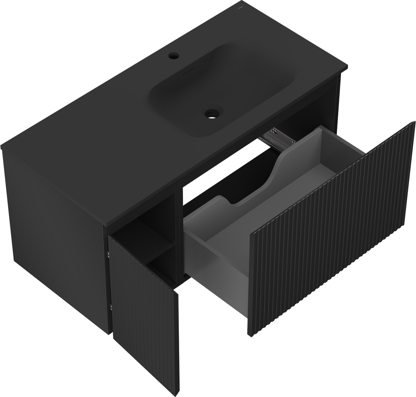 Mexen Rivel meuble de salle de bain 100 cm avec lavabo Vela droit, 1S, 1D, rainuré, noir mat - 91A23-10047-3-BBFF71-W23P71