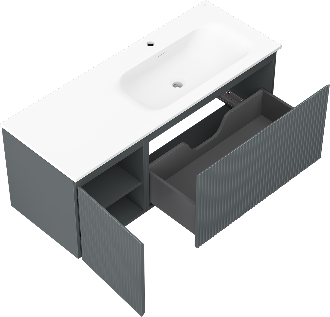 Mexen Rivel armoire de salle de bain 120 cm avec lavabo Vela droit, 1S, 1D, cannelée, graphite/blanc mat