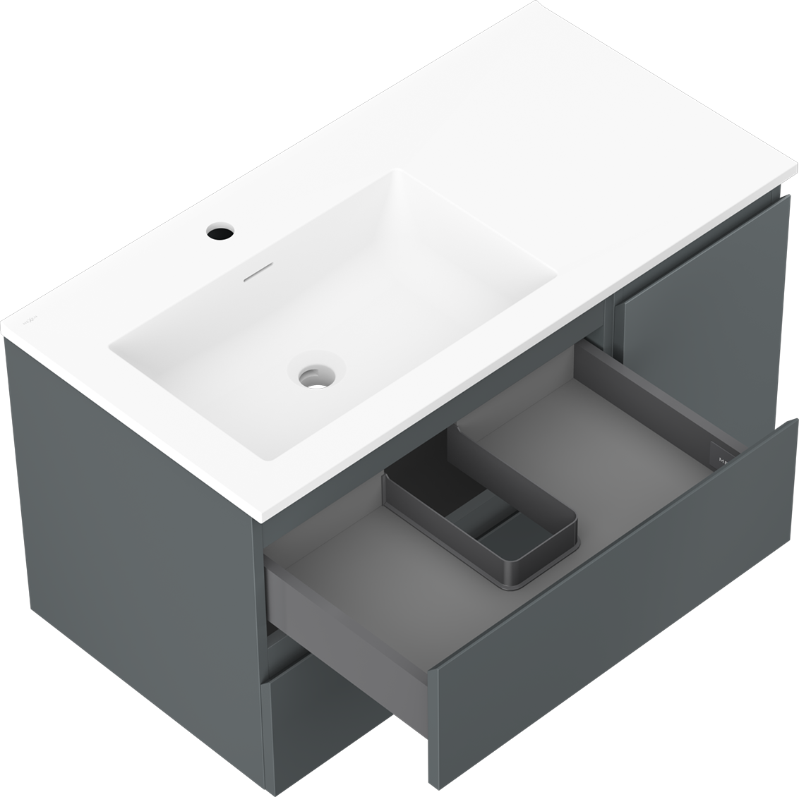 Mexen Orio meuble de salle de bain 90 cm avec lavabo Otis gauche, 2S, 1D, graphite mat/blanc mat - 91A13-09047-3-BBFFF66-W18L01