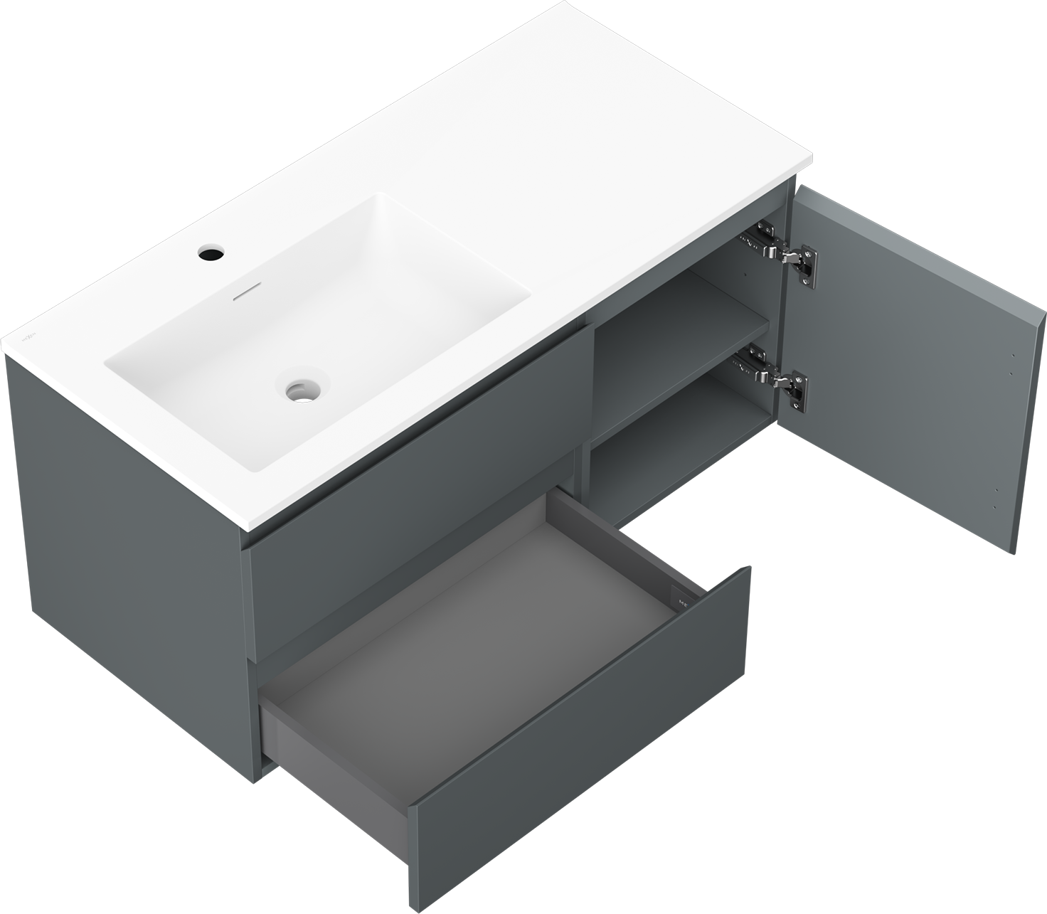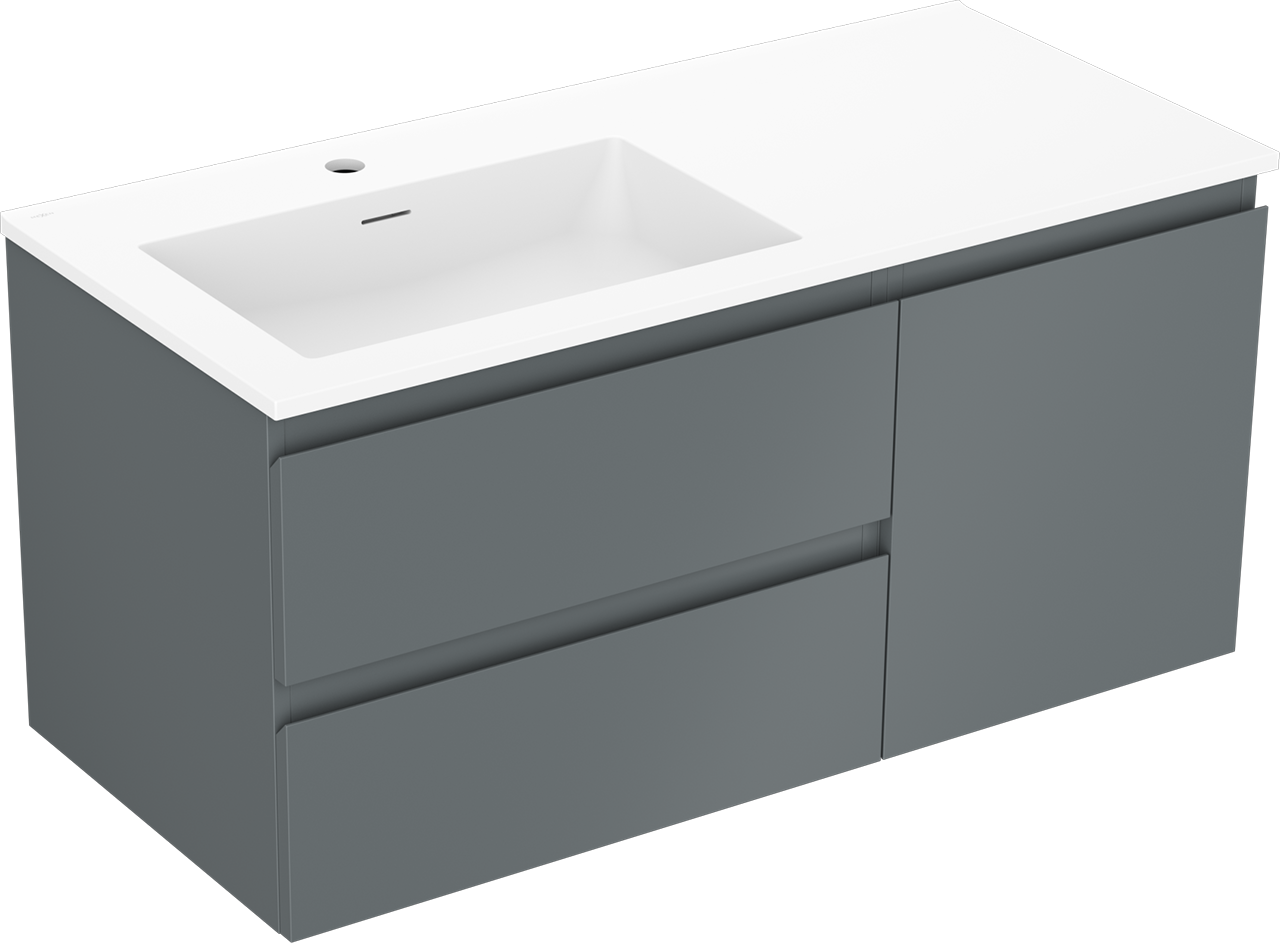 Mexen Orio meuble de salle de bain 100 cm avec lavabo Otis gauche, 2S, 1D, graphite mat/blanc mat - 91A13-10047-3-BBFFF66-W18L01