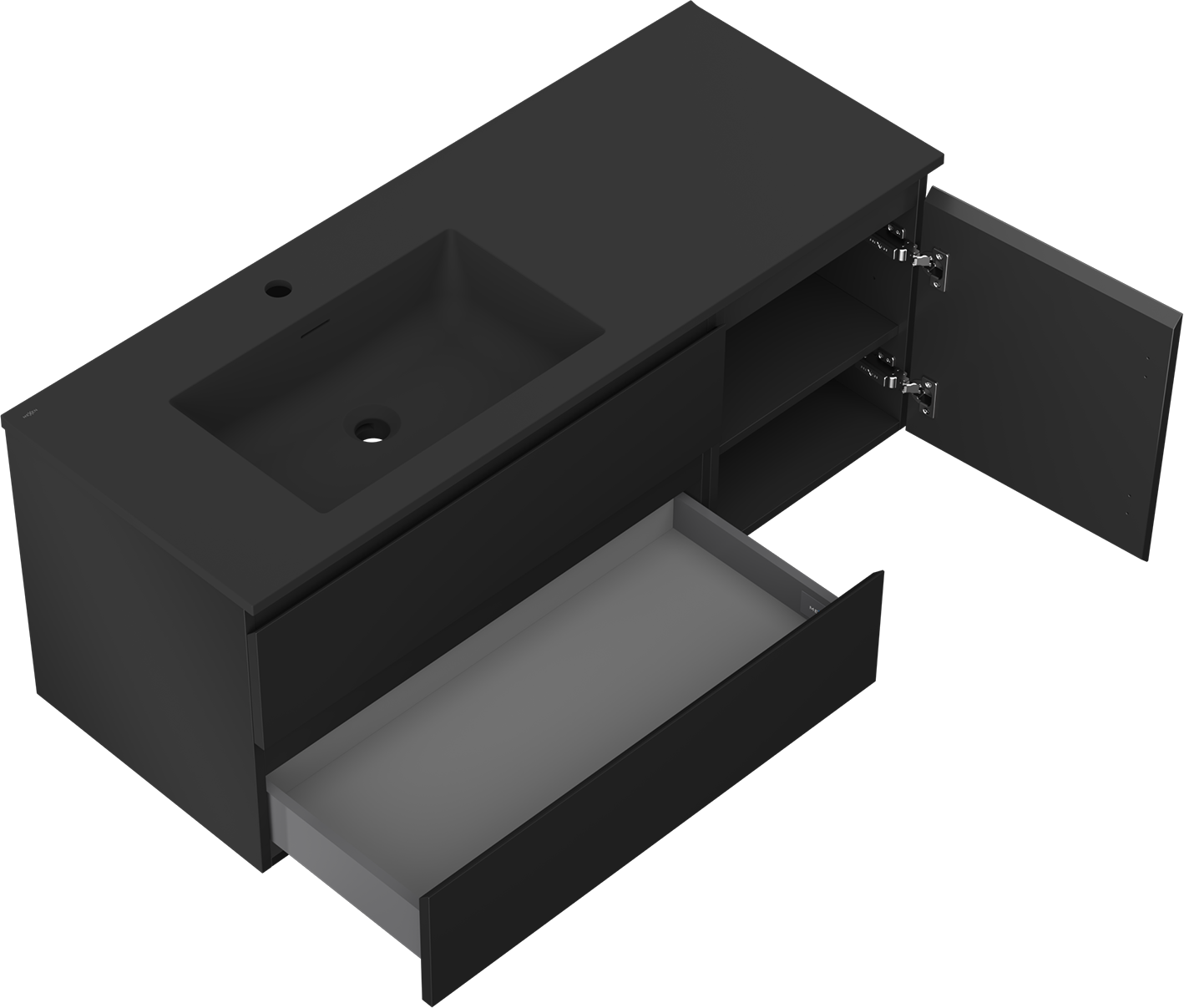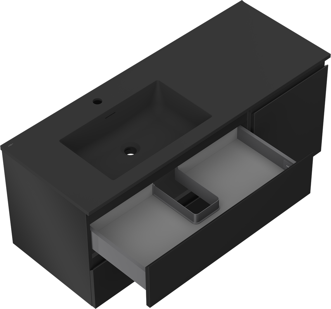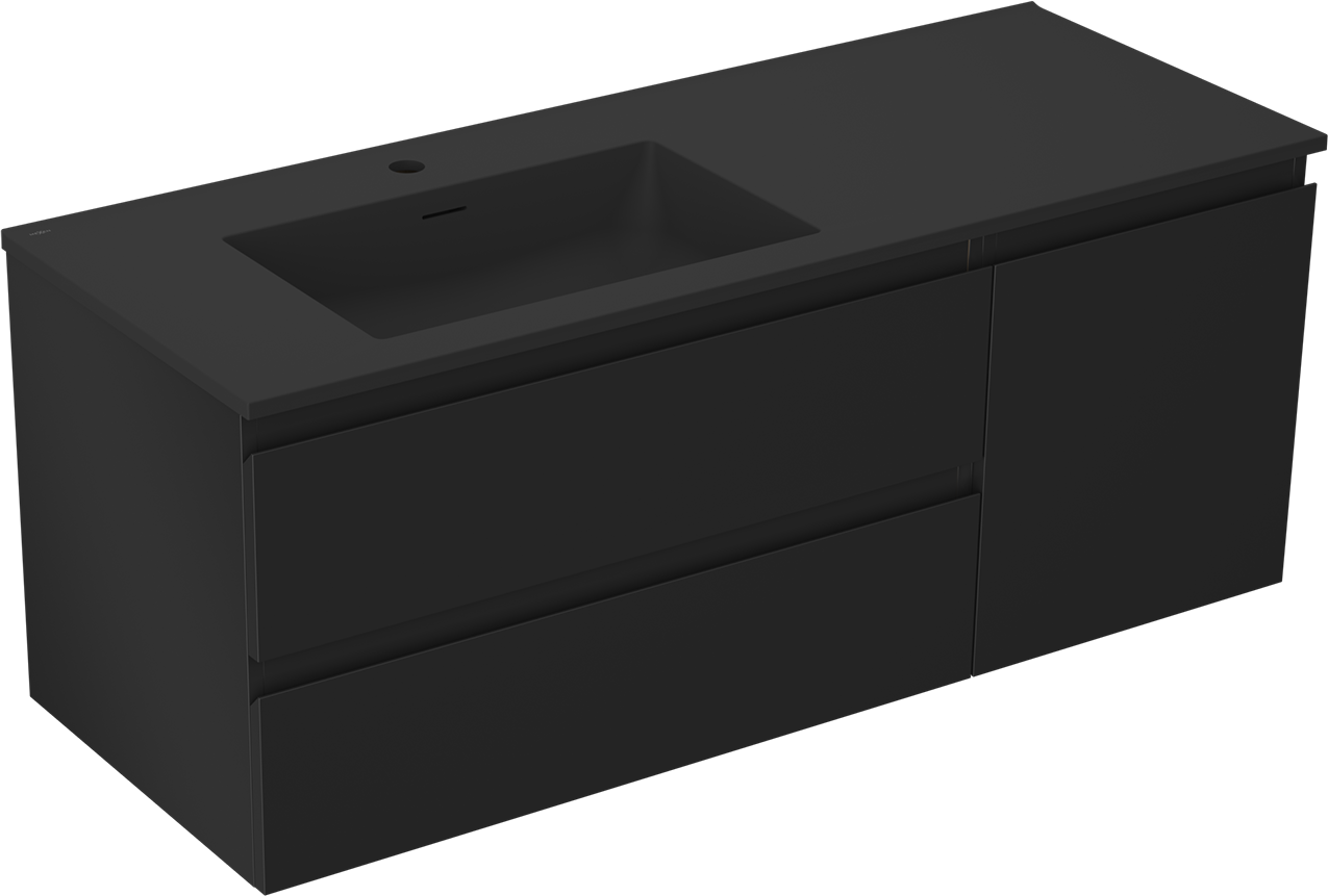 Mexen Orio meuble de salle de bain 120 cm avec lavabo Otis gauche, 2S, 1D, noir mat - 91A13-12047-3-BBFFF71-W18L71