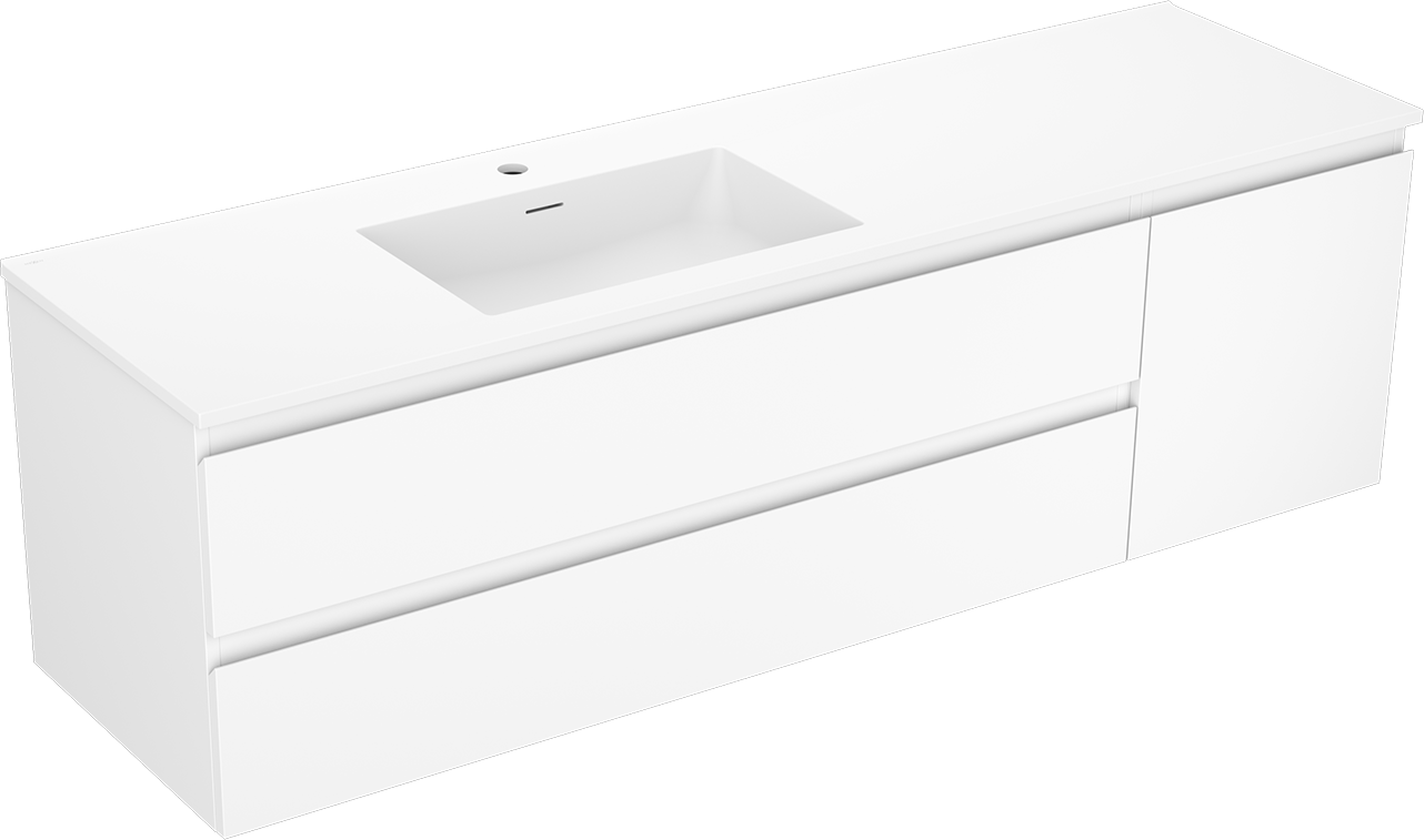 Mexen Orio armoire de salle de bain 160 cm avec lavabo Otis à gauche, 2S, 1D, blanc mat - 91A13-16047-3-BBFFF01-W18L01