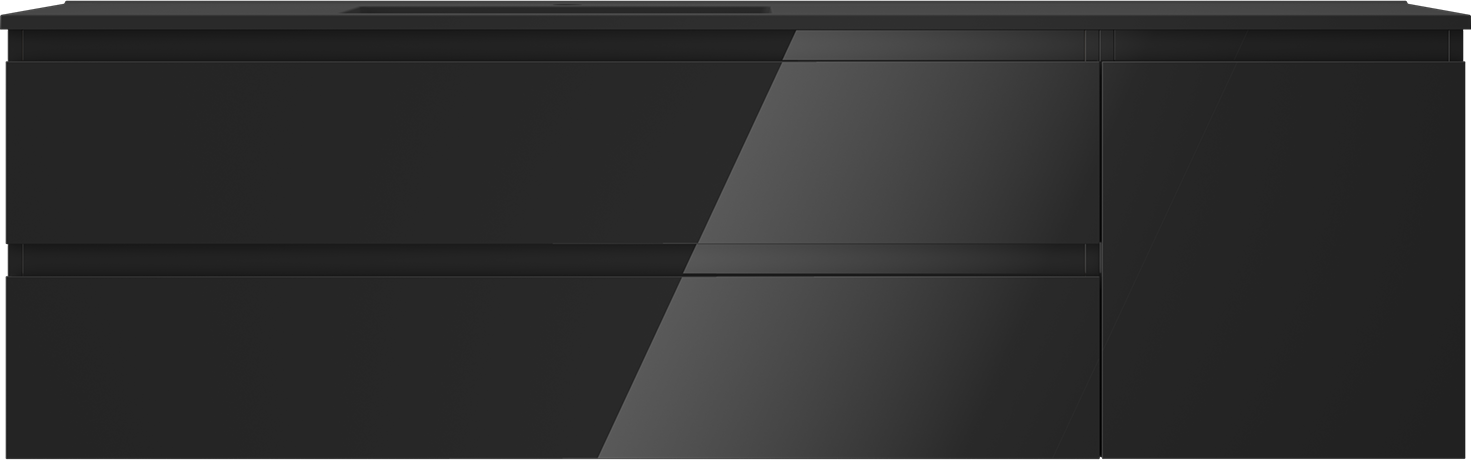 Mexen Orio meuble de salle de bain 160 cm avec vasque Otis gauche, 2T, 1P, noir brillant/noir mat - 91A13-16047-3-BBFFF70-W18L71