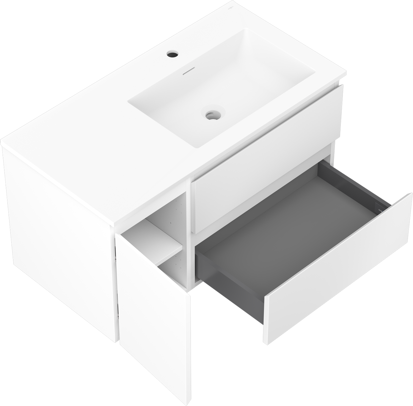 Mexen Orio meuble de salle de bain 90 cm avec lavabo Otis droit, 2S, 1D, blanc mat - 91A13-09047-3-BBFFF01-W18P01