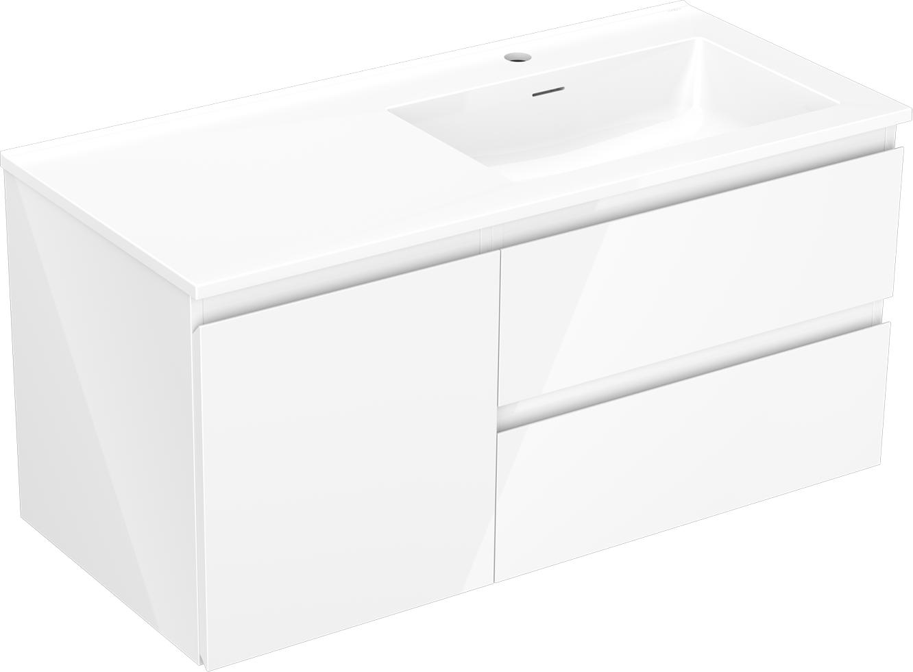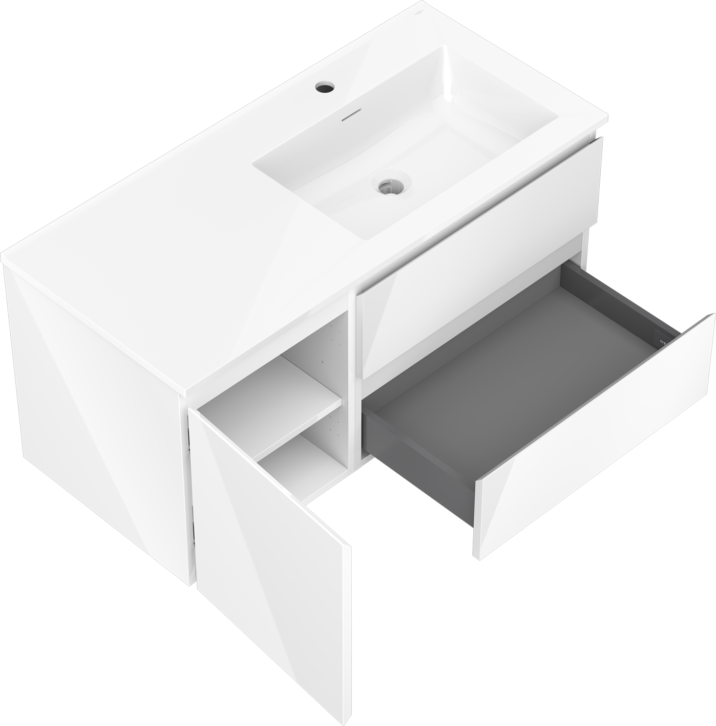 Mexen Orio armoire de salle de bains 100 cm avec lavabo Otis droit, 2S, 1D, blanc brillant - 91A13-10047-3-BBFFF00-W18P00