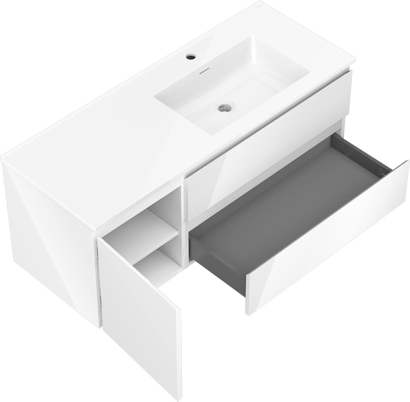 Mexen Orio meuble de salle de bains 120 cm avec lavabo Otis droit, 2S, 1D, blanc brillant - 91A13-12047-3-BBFFF00-W18P00