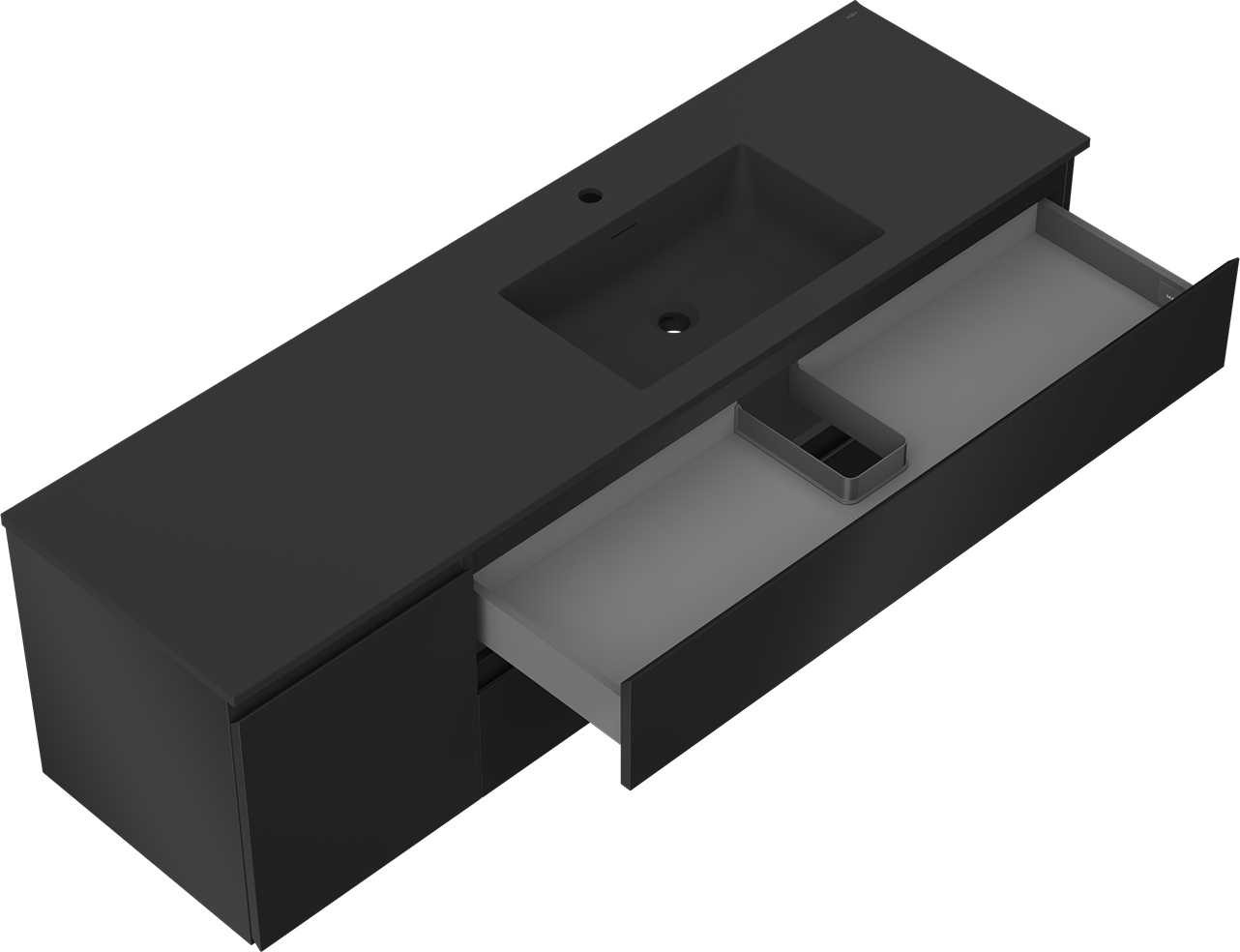 Mexen Orio meuble de salle de bain 160 cm avec lavabo Otis à droite, 2S, 1D, noir mat - 91A13-16047-3-BBFFF71-W18P71