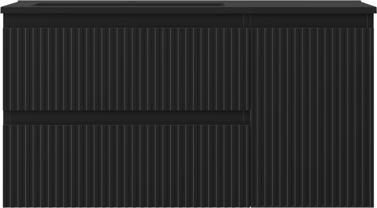 Mexen Rivel meuble de salle de bain 90 cm avec lavabo Otis gauche, 2S, 1D, rainuré, noir mat - 91A23-09047-3-BBFFF71-W18L71
