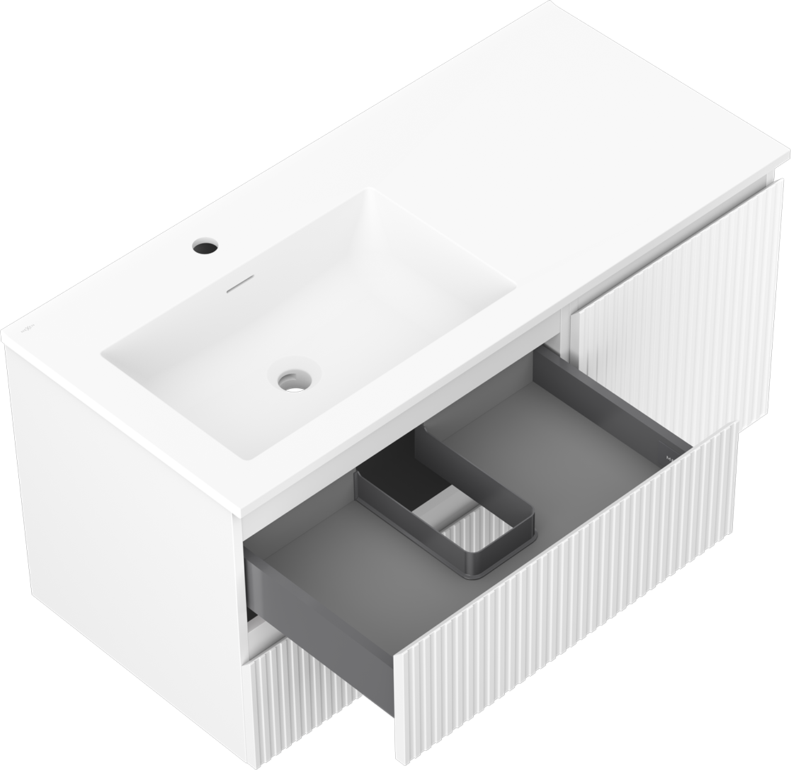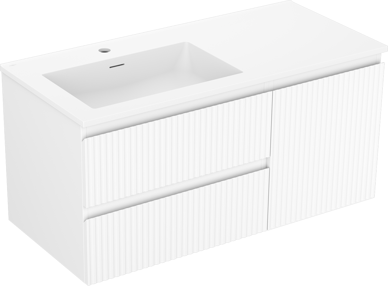 Mexen Rivel meuble de salle de bain 100 cm avec lavabo Otis gauche, 2T, 1P, rainuré, blanc mat - 91A23-10047-3-BBFFF01-W18L01