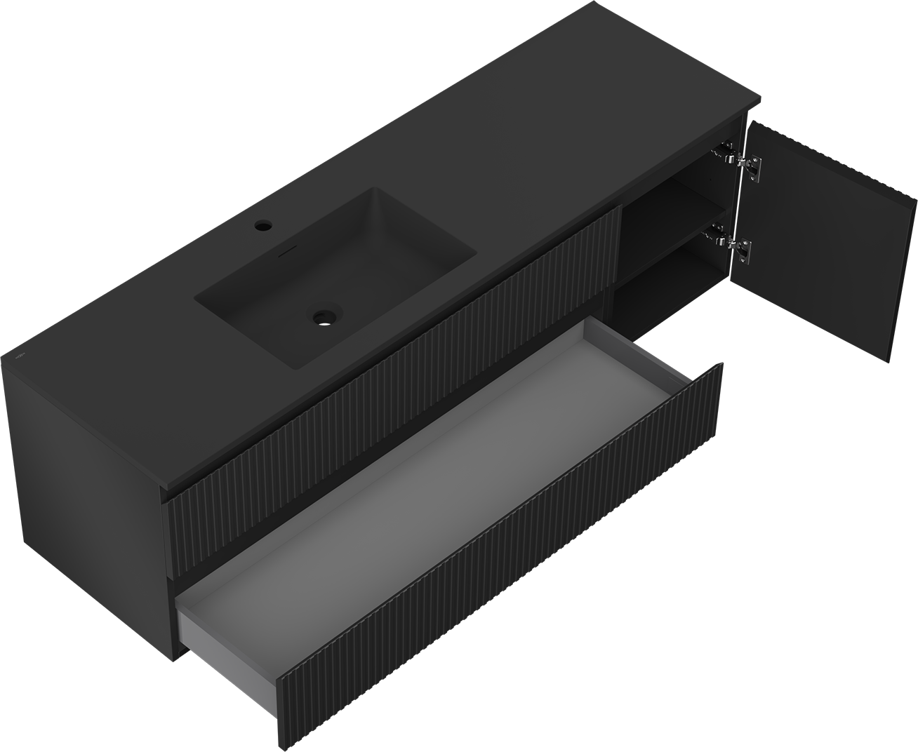 Mexen Rivel armoire de salle de bain 160 cm avec lavabo Otis gauche, 2S, 1D, rainuré, noir mat - 91A23-16047-3-BBFFF71-W18L71