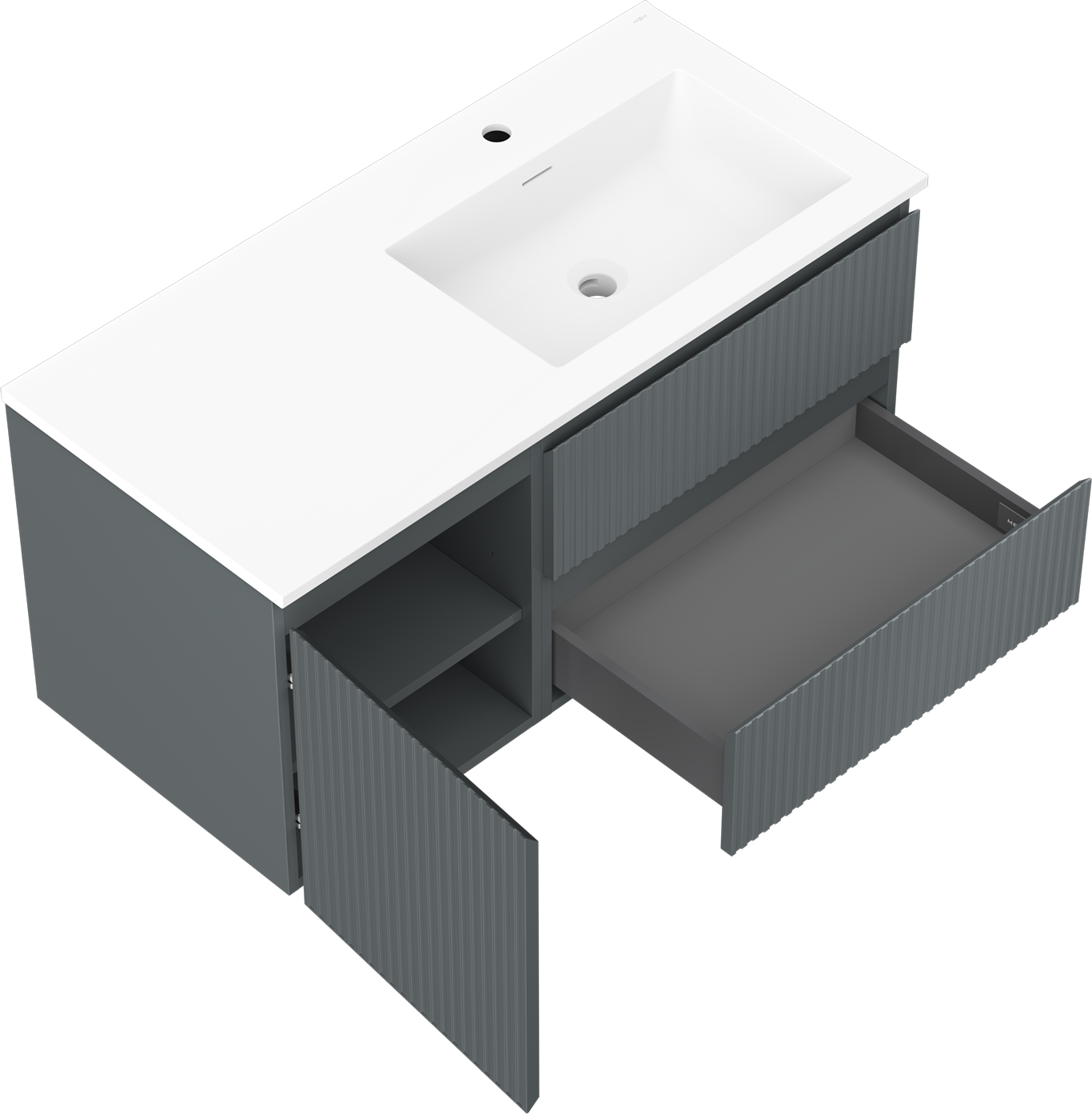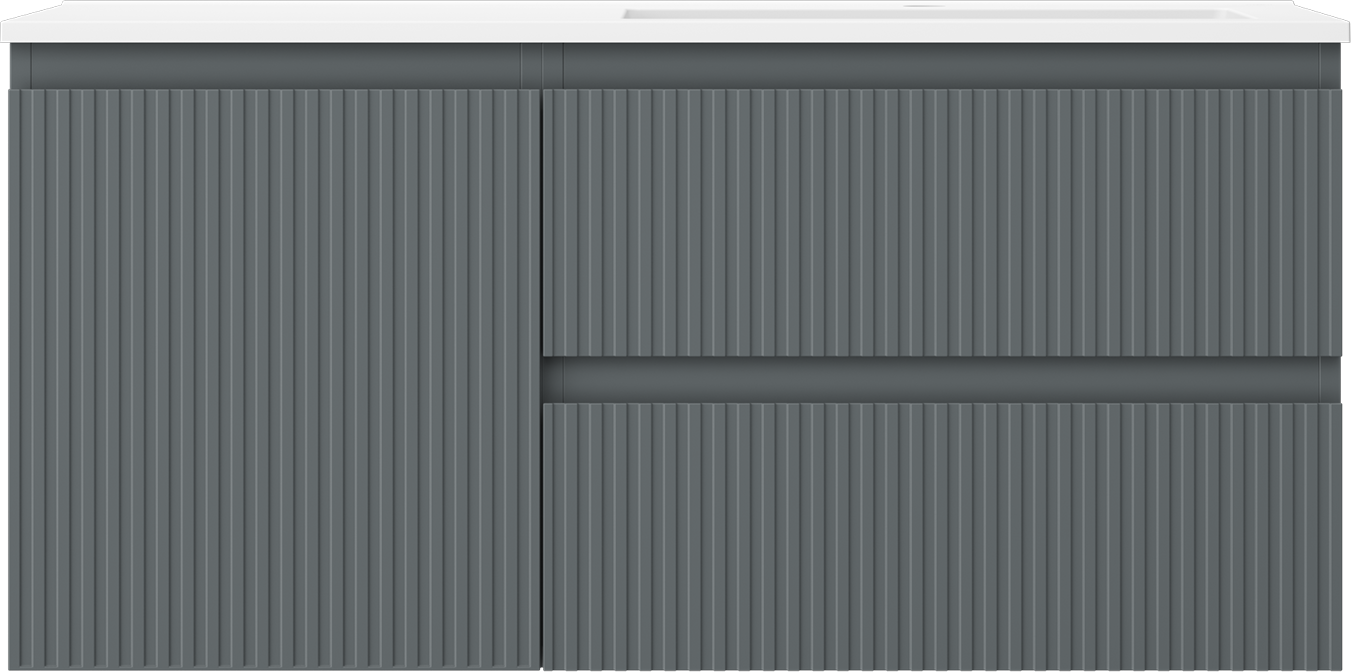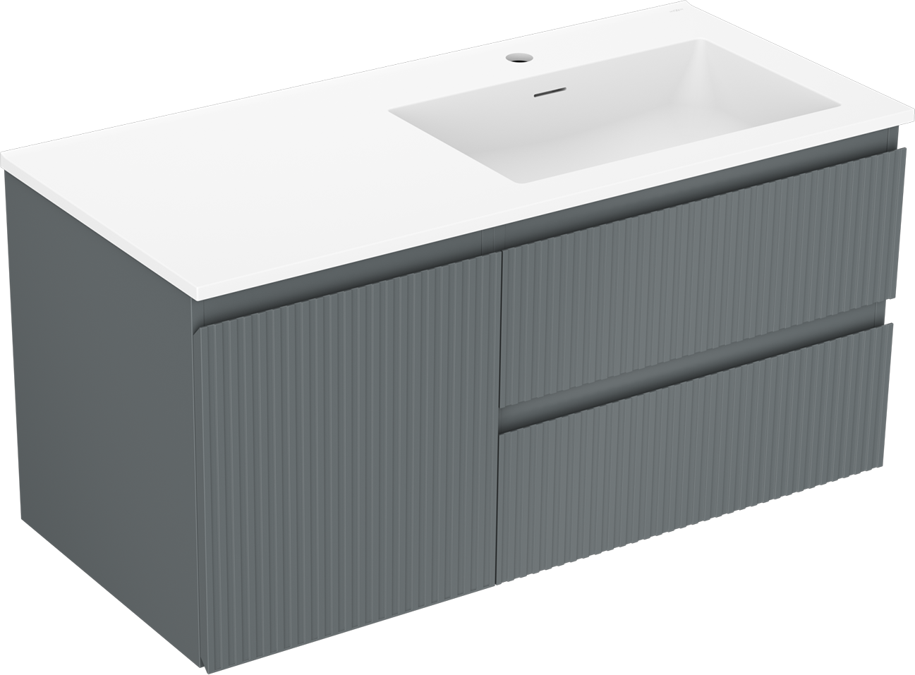 Mexen Rivel armoire de salle de bain 100 cm avec lavabo Otis à droite, 2 tiroirs, 1 porte, nervurée, graphite/blanc mat
