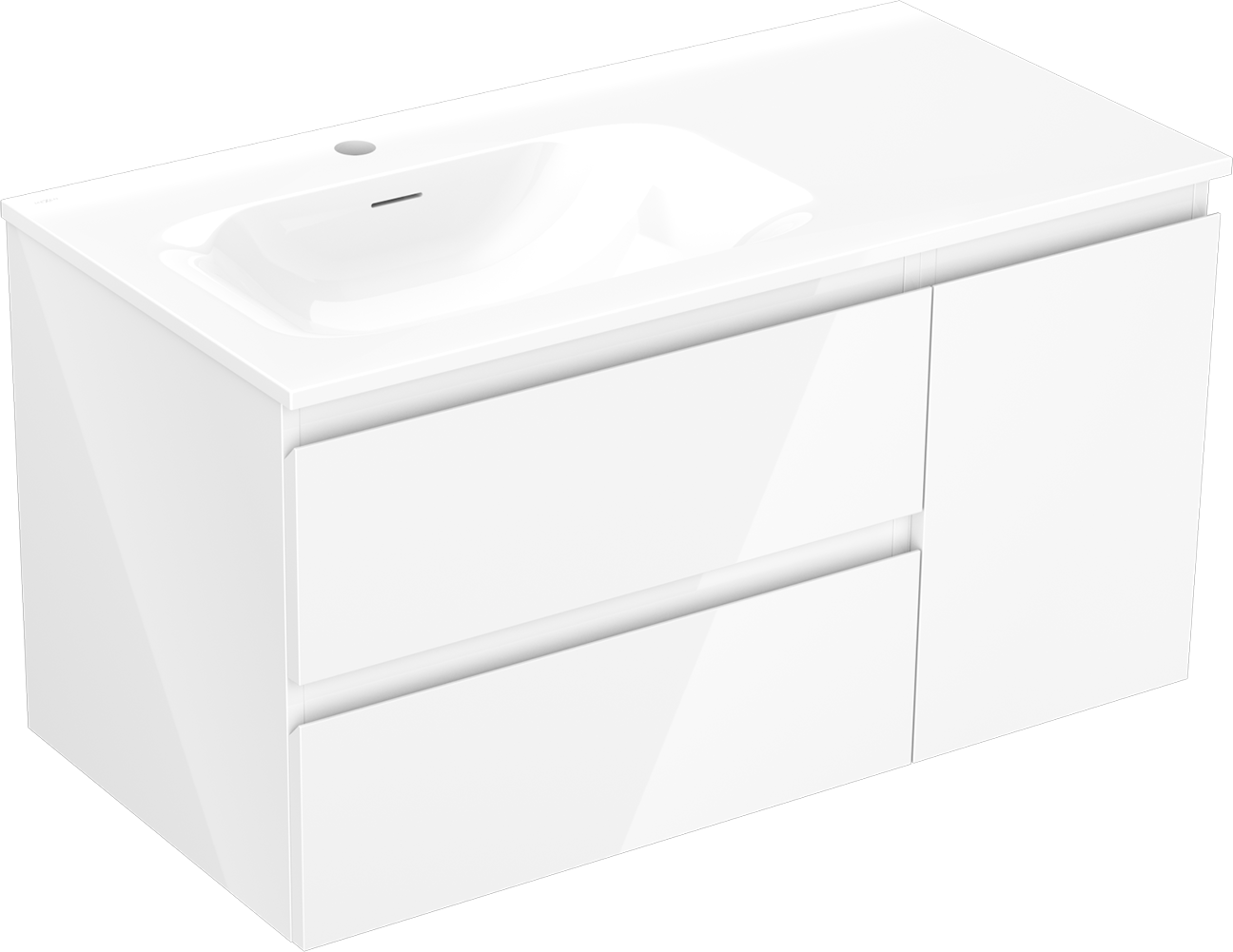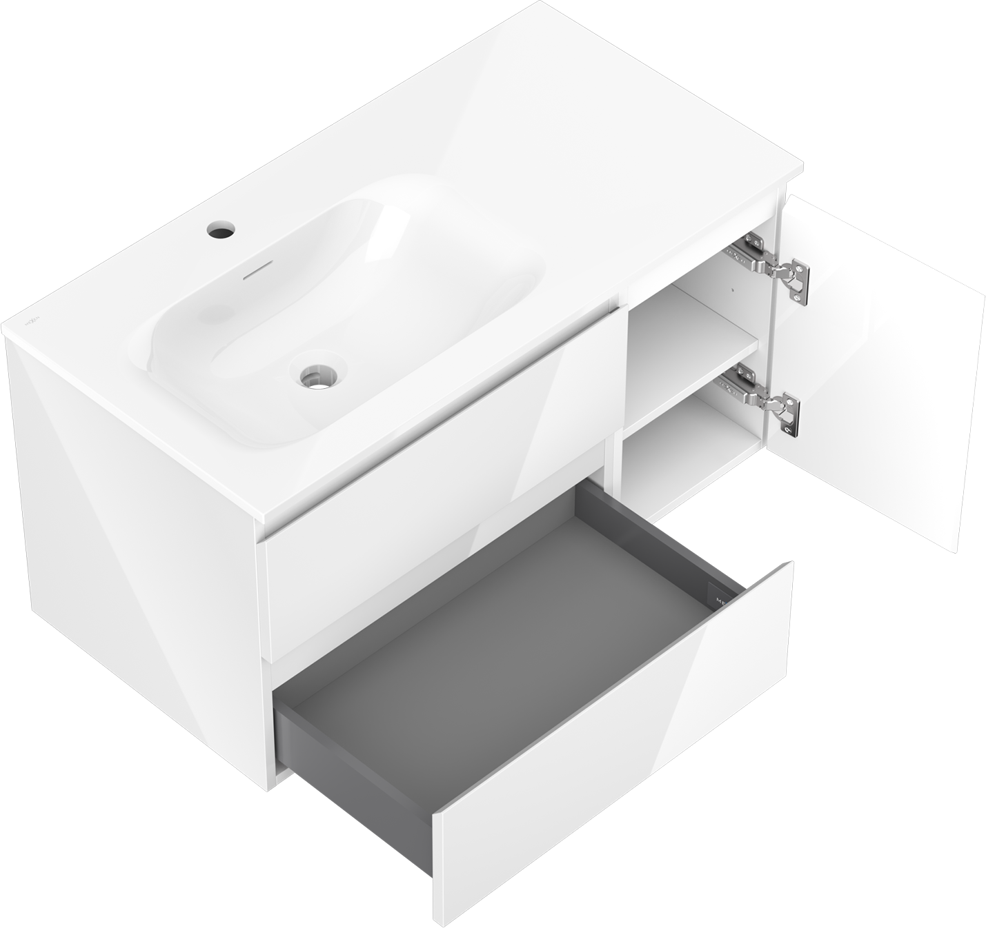 Mexen Orio armoire de salle de bain 90 cm avec lavabo Vela gauche, 2S, 1D, blanc brillant - 91A13-09047-3-BBFFF00-W23L00