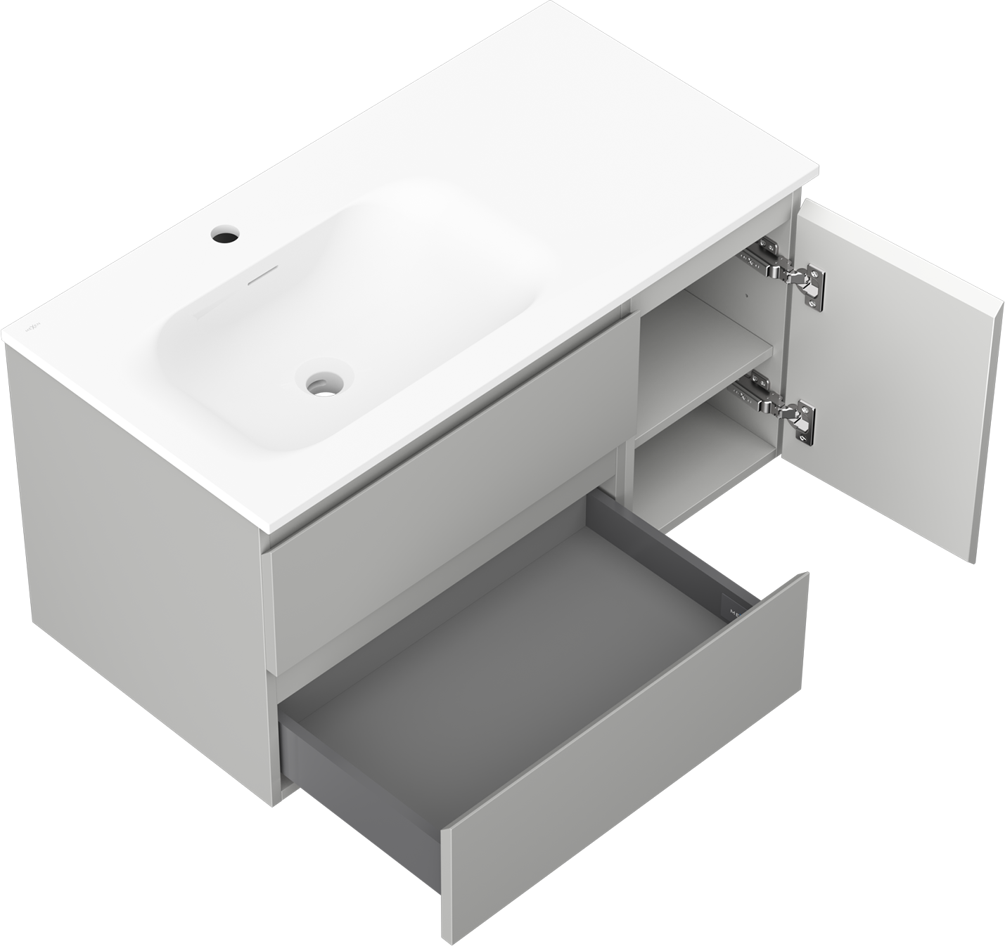 Mexen Orio armoire de salle de bain 90 cm avec lavabo Vela gauche, 2S, 1D, gris mat/blanc mat - 91A13-09047-3-BBFFF62-W23L01