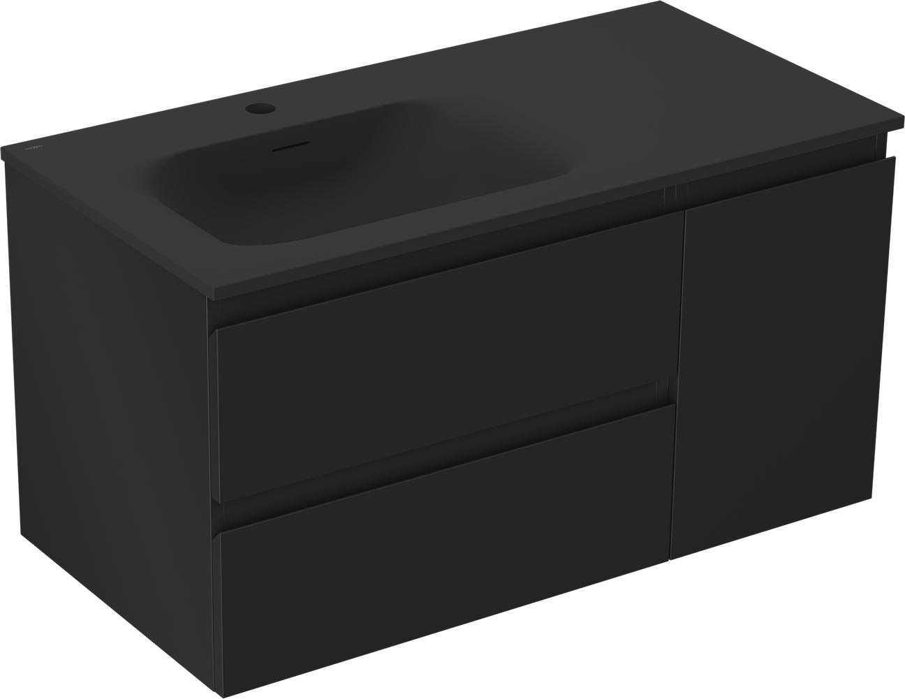 Mexen Orio meuble de salle de bain 90 cm avec lavabo Vela à gauche, 2S, 1D, noir mat - 91A13-09047-3-BBFFF71-W23L71