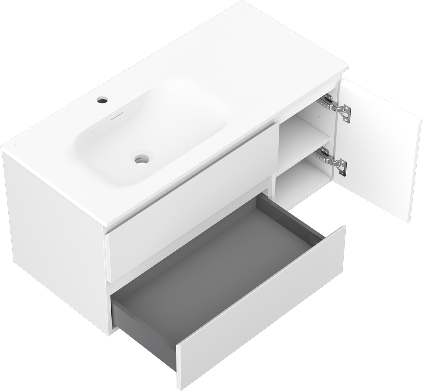 Mexen Orio meuble de salle de bain 100 cm avec lavabo Vela gauche, 2S, 1D, blanc mat - 91A13-10047-3-BBFFFF01-W23L01