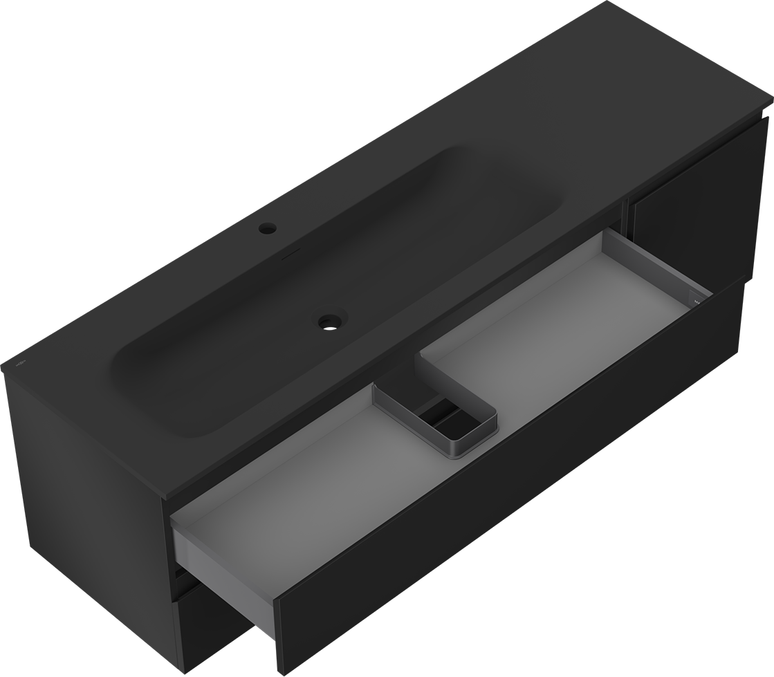 Mexen Orio meuble de salle de bain 160 cm avec lavabo Vela gauche, 2S, 1D, noir mat - 91A13-16047-3-BBFFF71-W23L71