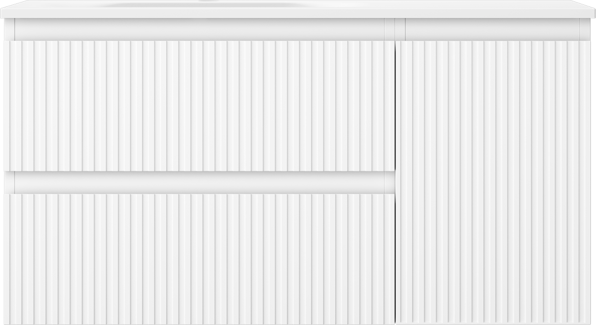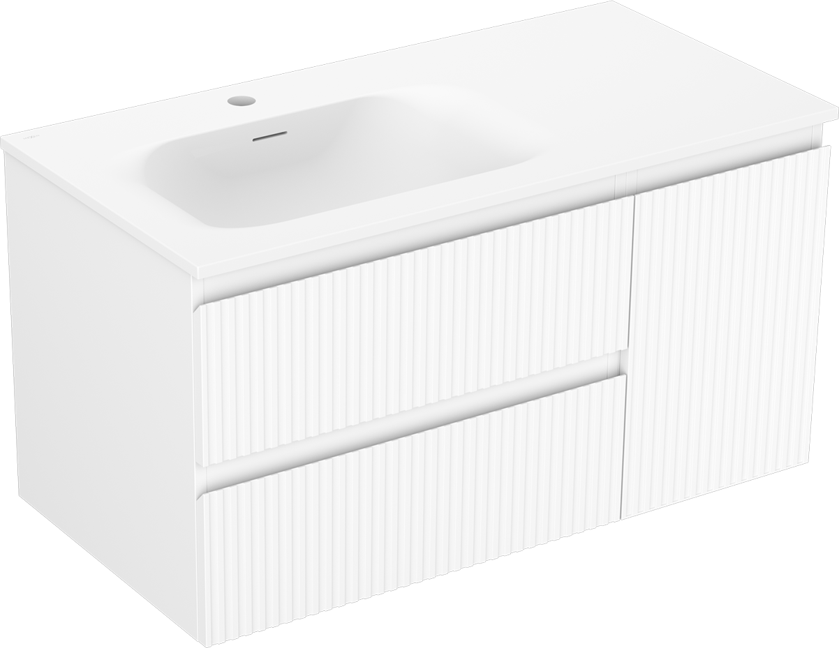 Mexen Rivel meuble de salle de bains 90 cm avec lavabo Vela gauche, 2S, 1D, rainuré, blanc mat - 91A23-09047-3-BBFFF01-W23L01