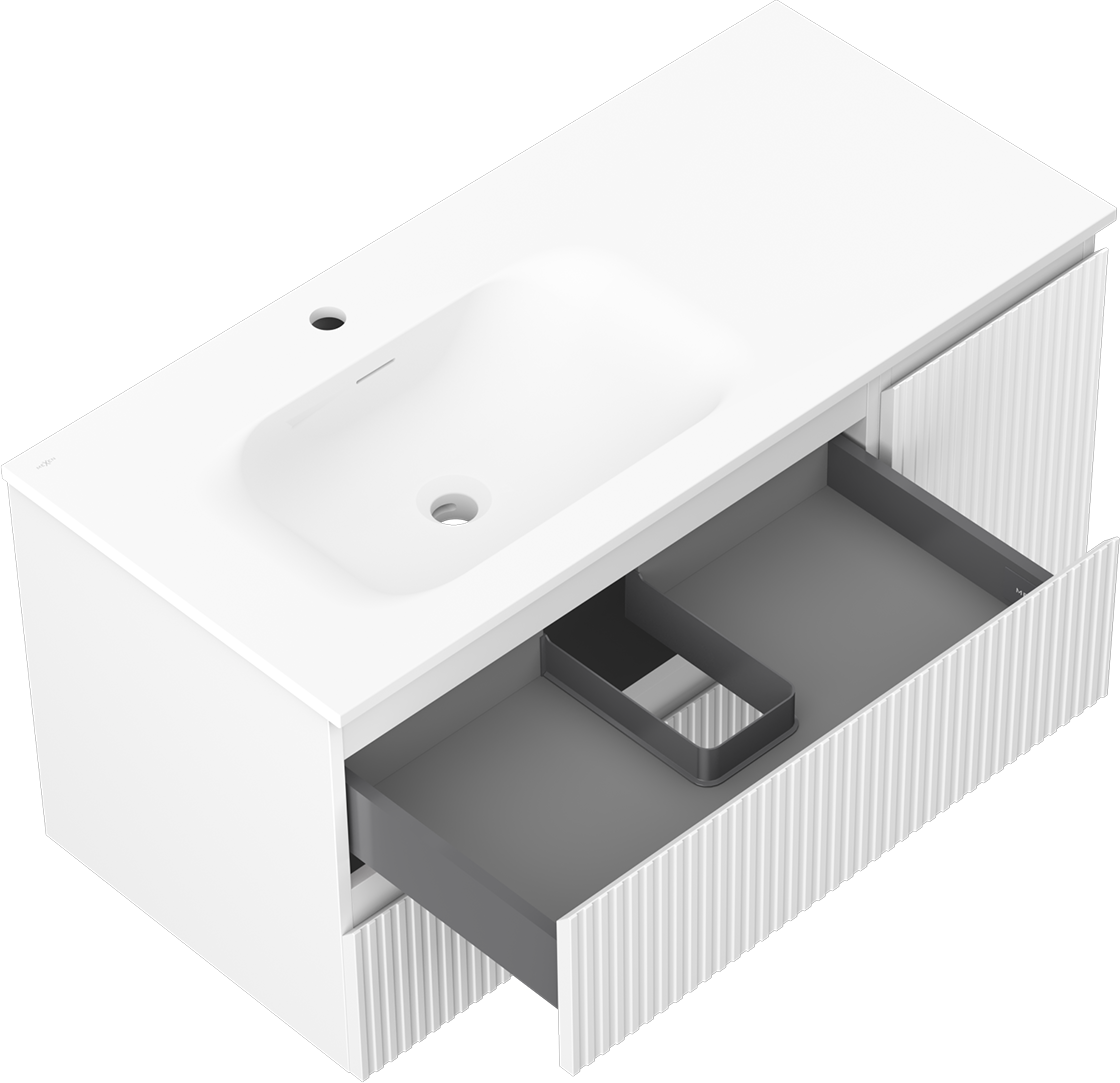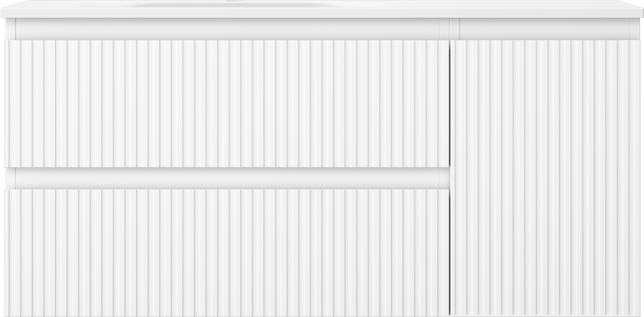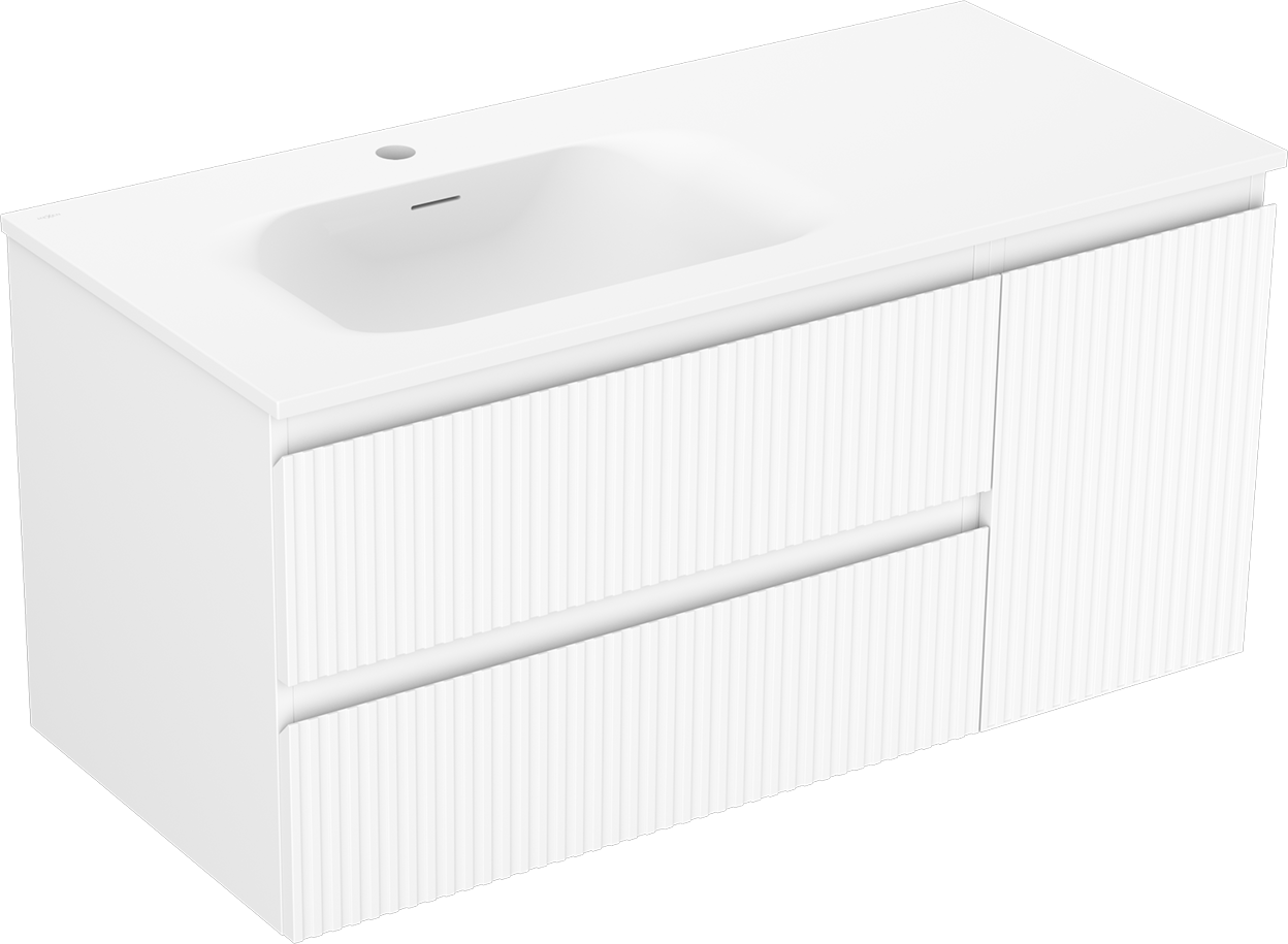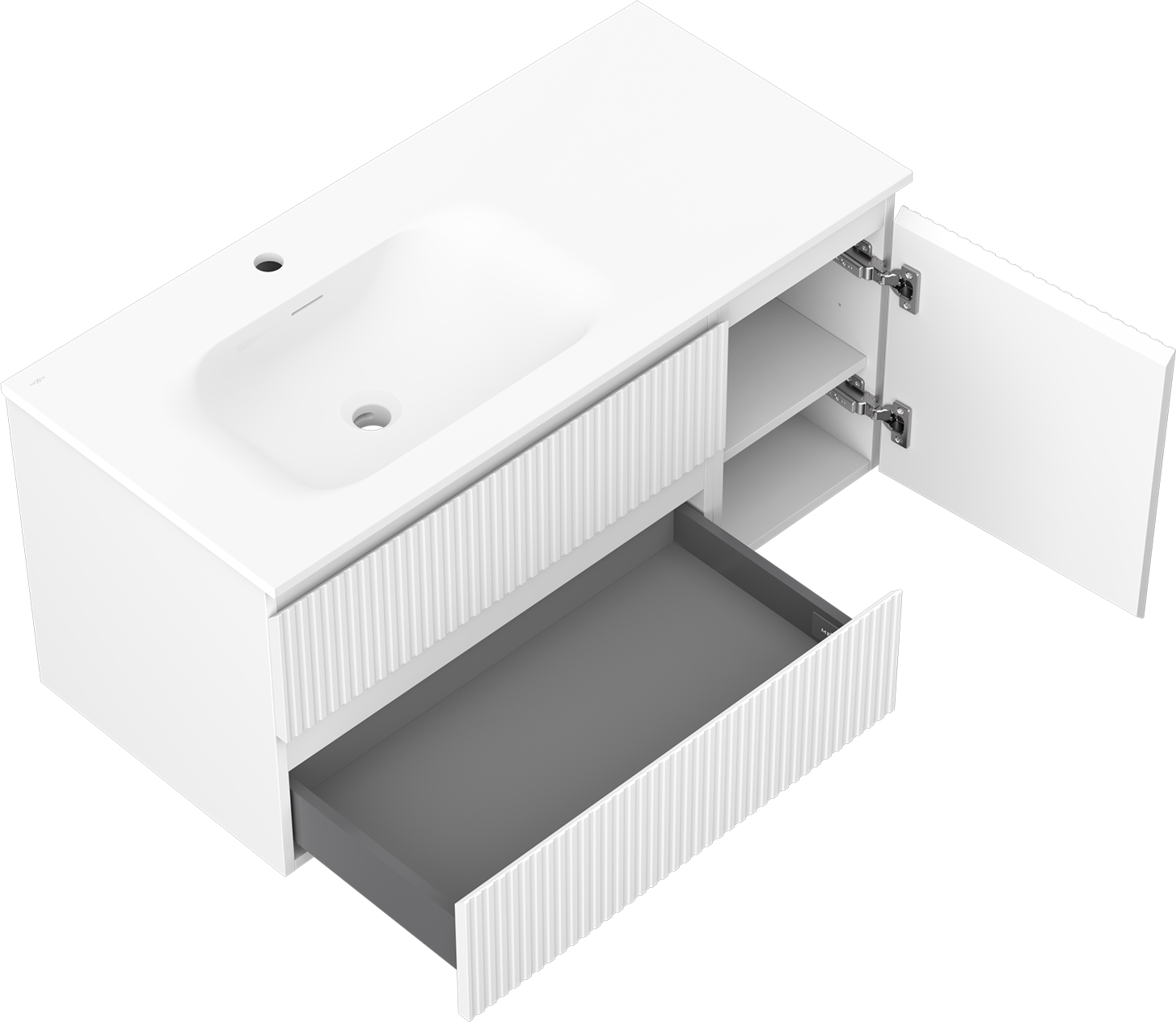 Mexen Rivel armoire de salle de bains 100 cm avec lavabo Vela gauche, 2S, 1D, cannelé, blanc mat - 91A23-10047-3-BBFFF01-W23L01