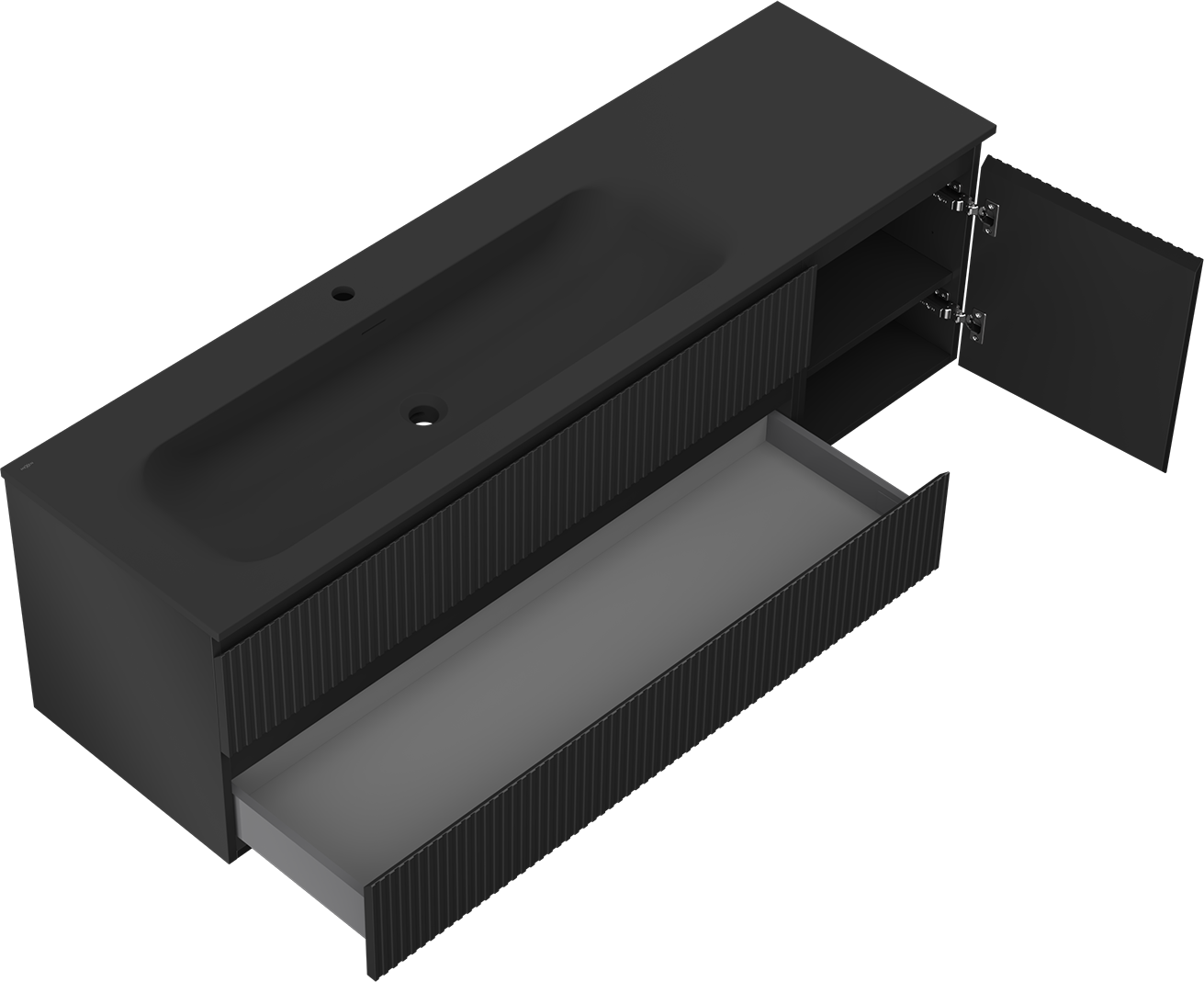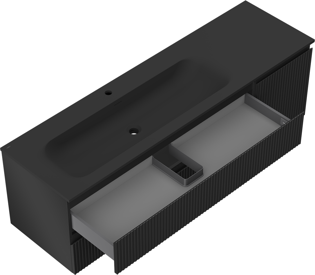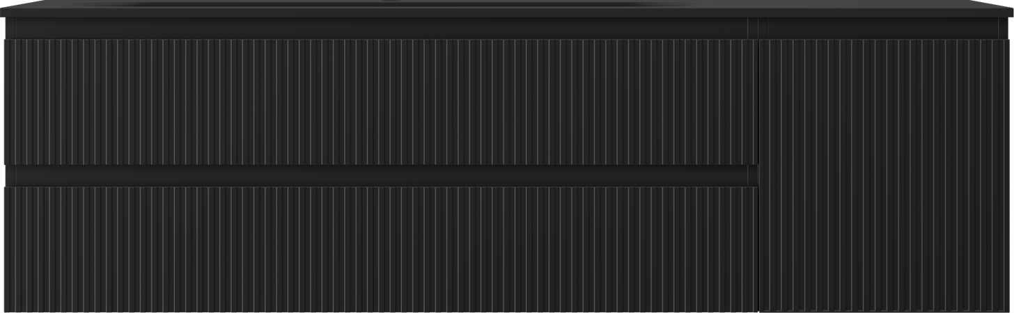 Mexen Rivel armoire de salle de bain 160 cm avec lavabo Vela gauche, 2S, 1D, rainurée, noir mat - 91A23-16047-3-BBFFF71-W23L71
