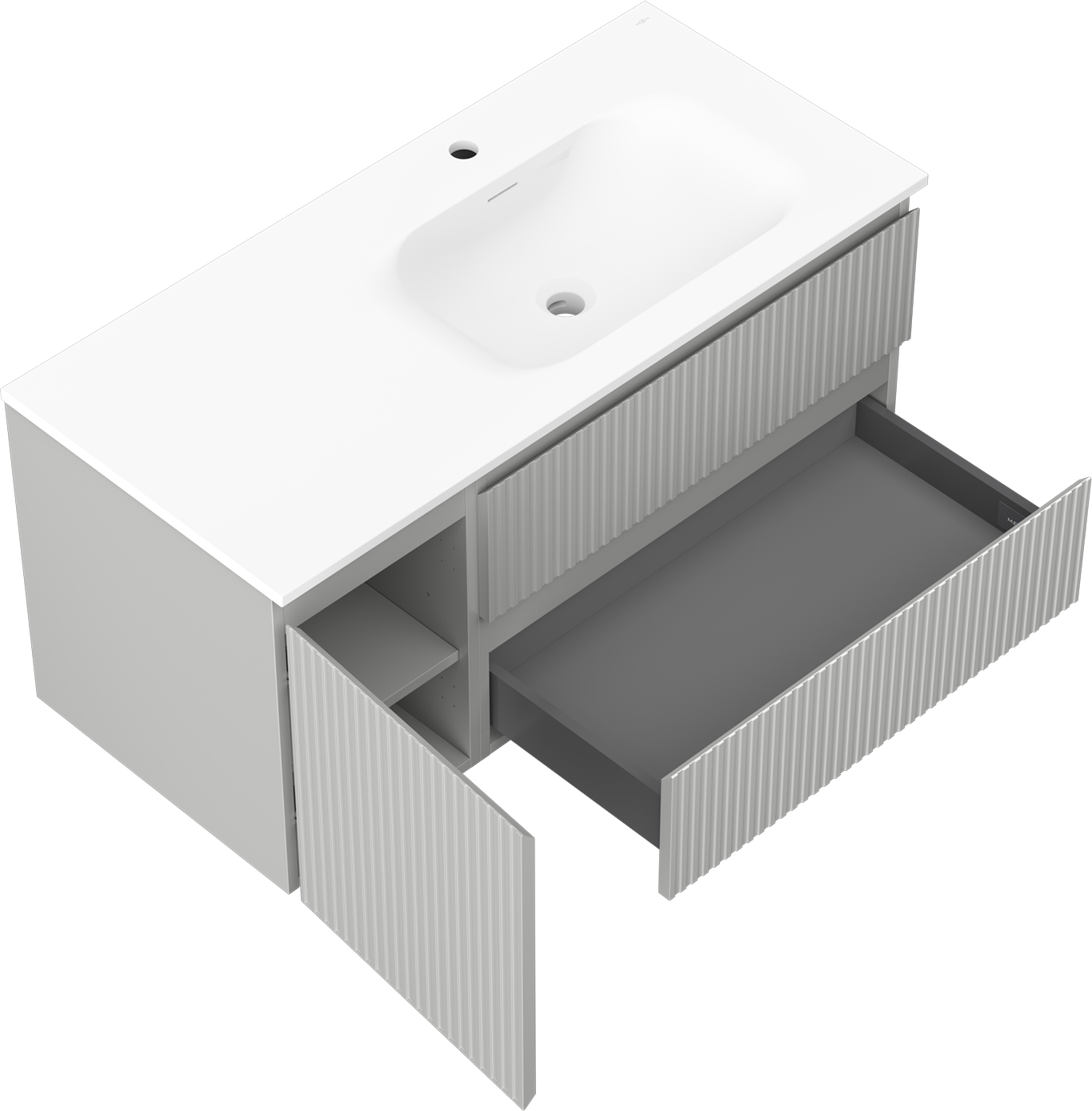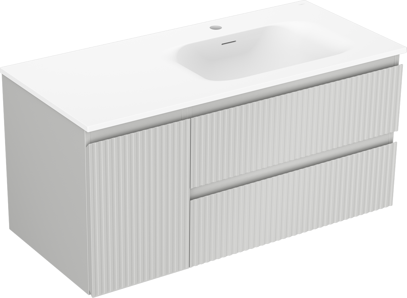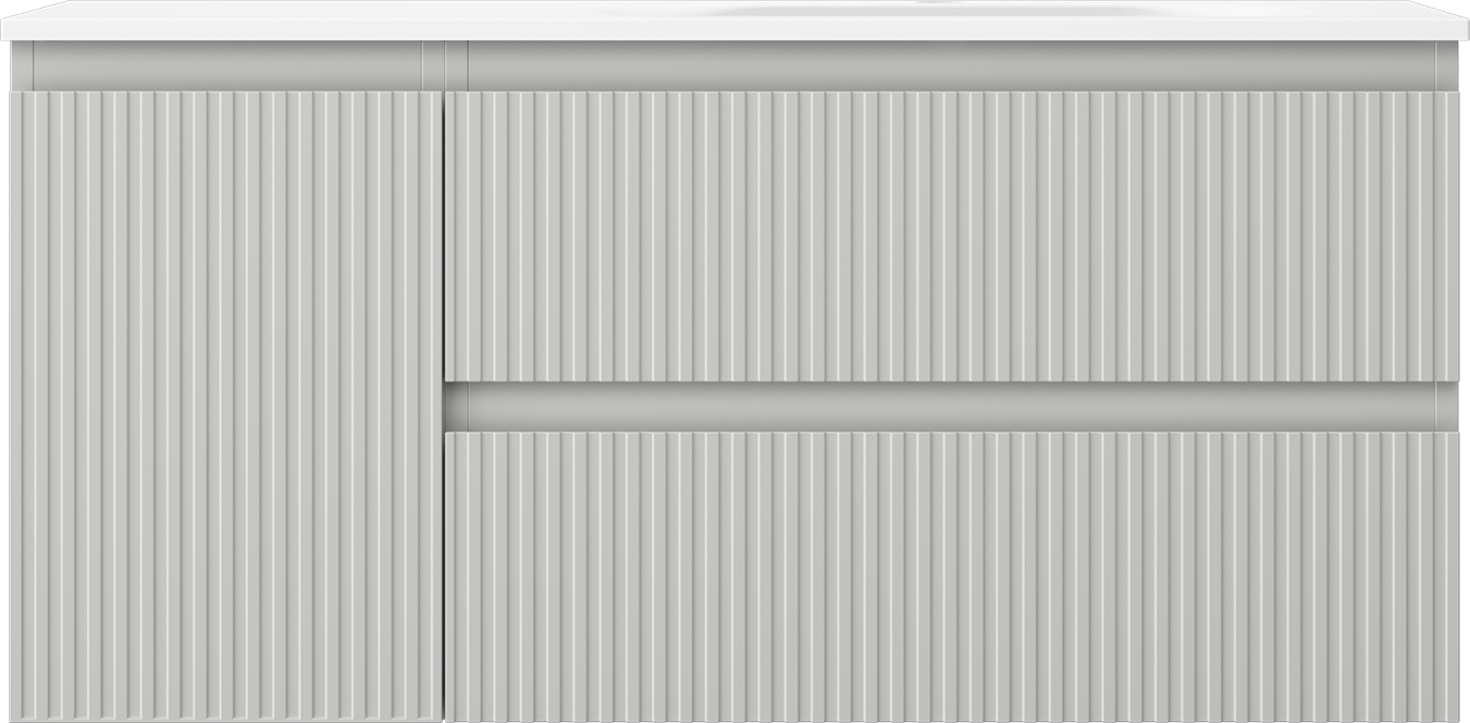 Mexen Rivel meuble de salle de bain 100 cm avec lavabo Vela à droite, 2S, 1D, cannelé, gris/blanc mat