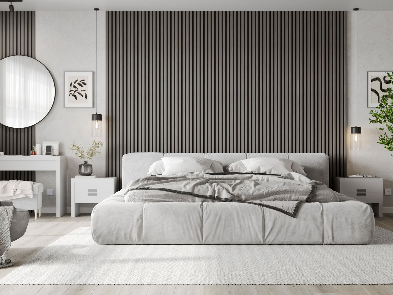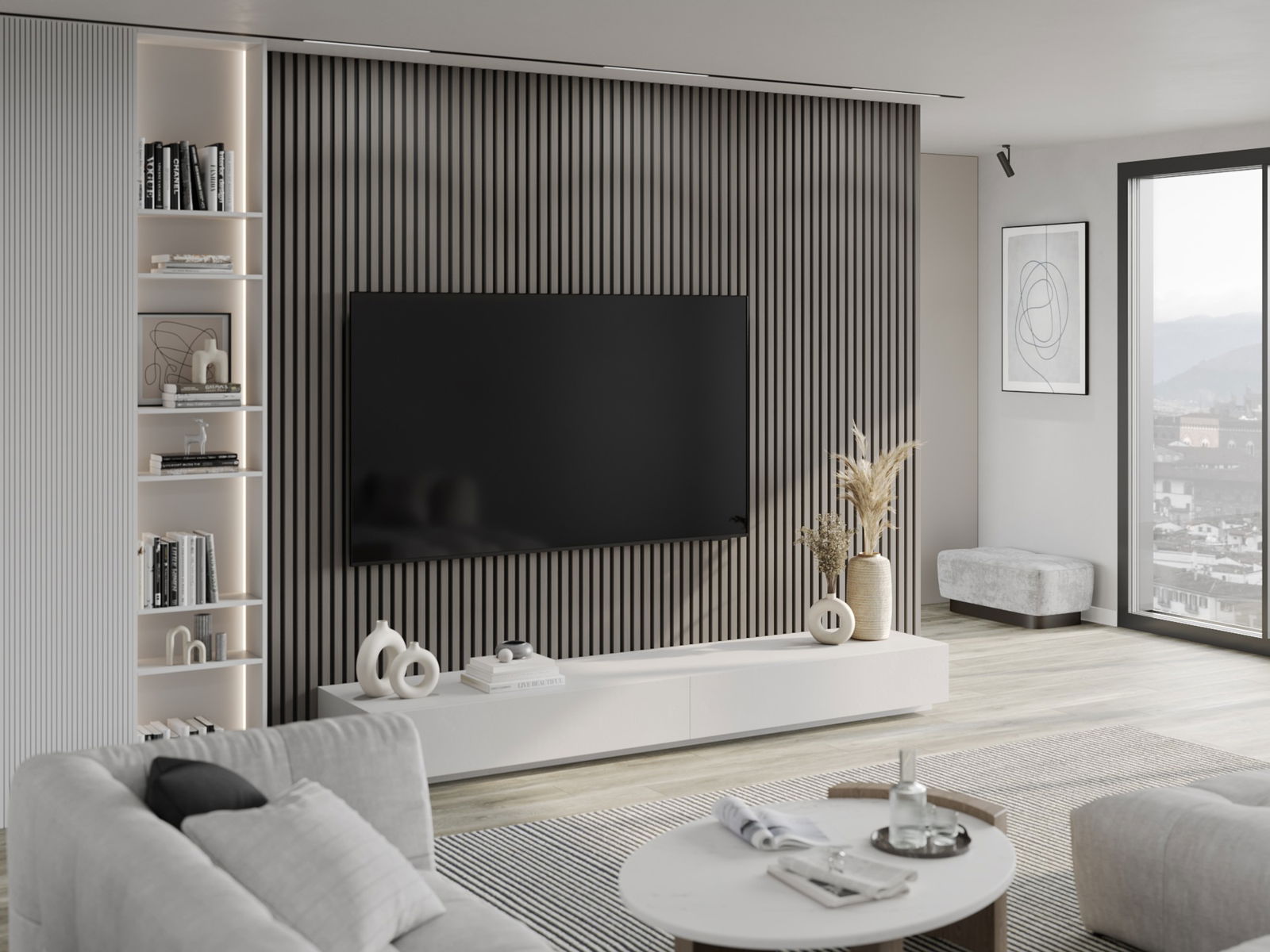 Mexen Lam-B lamelles murales 275 x 30 cm, plaque HDF 4 mm, placage technique, Chêne Acier - S100-275307-3015-006