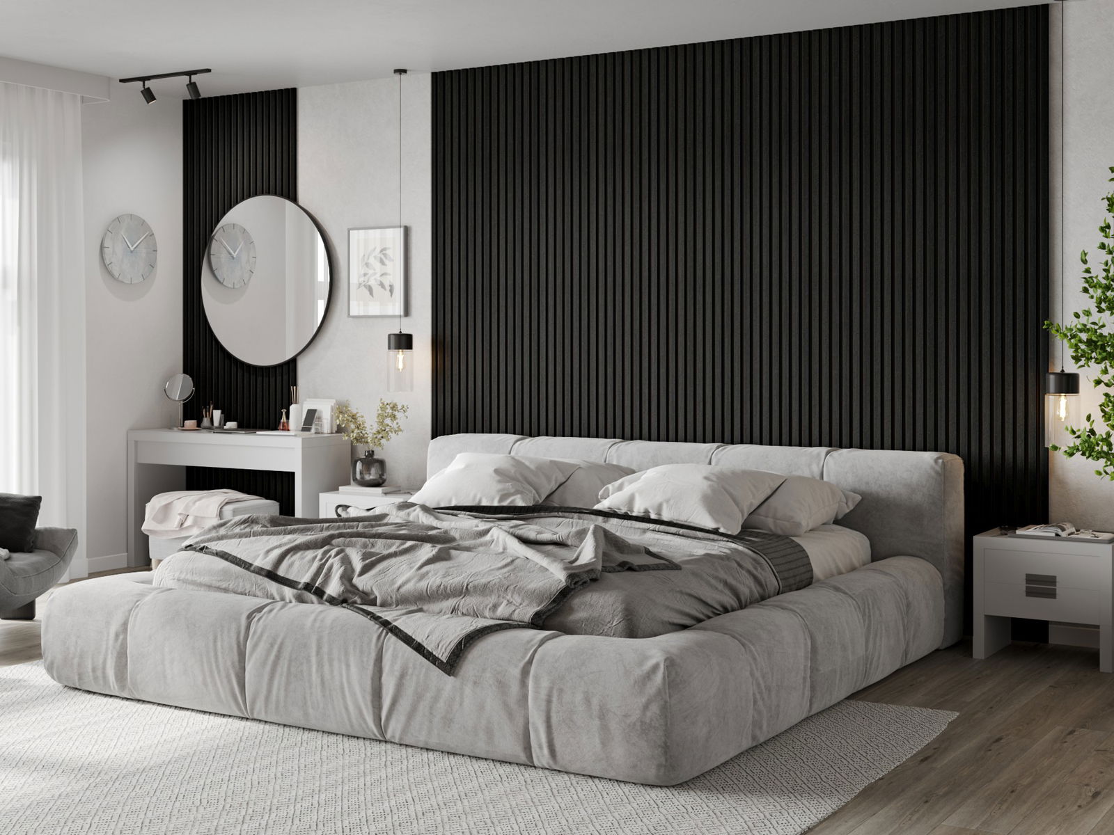 Mexen Lam-B lattes murales 275 x 30 cm, panneau HDF 4 mm, placage technique, Chêne Noir Argenté - S100-275307-3015-025