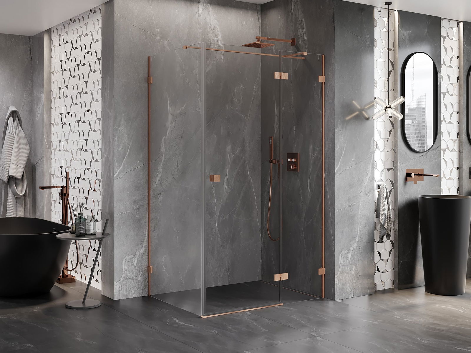 La poignée pratique et confortable est fabriquée en métal durable et résistant. Sa forme à la mode, combinée à une finition assortie à la couleur des profilés, donne à l'ensemble un aspect moderne et stylé, soulignant l'esthétique de chaque salle de bain.