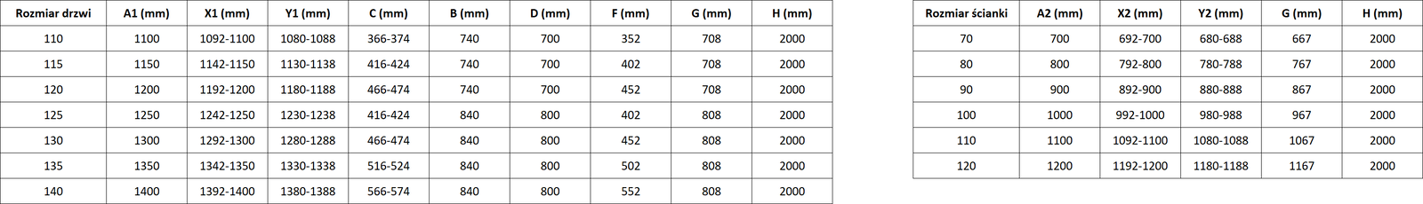 Taille: 90x90 cm (porte gauche 90 cm, paroi 90 cm)