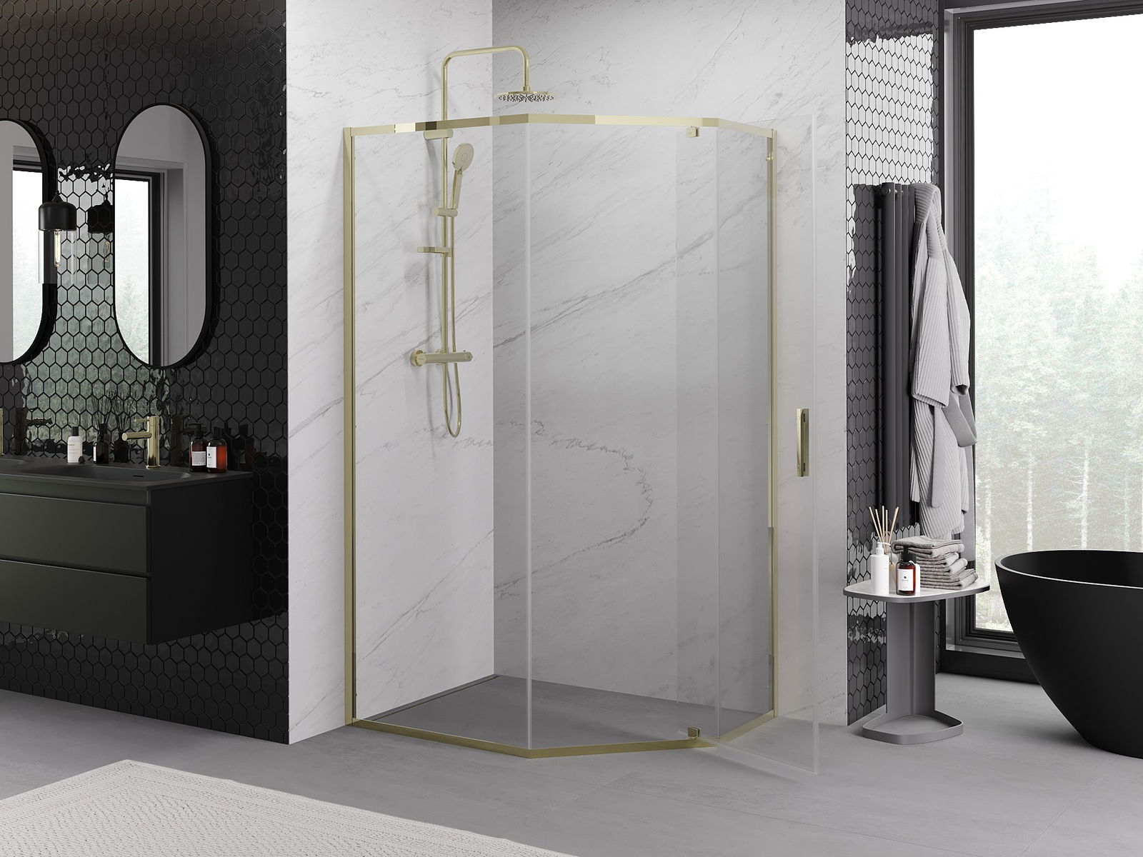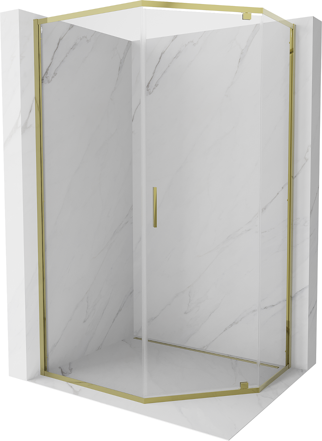 Mexen Exo cabine de douche pentagonale battante 100 x 80 cm, transparente, or - 812-100-080-50-00