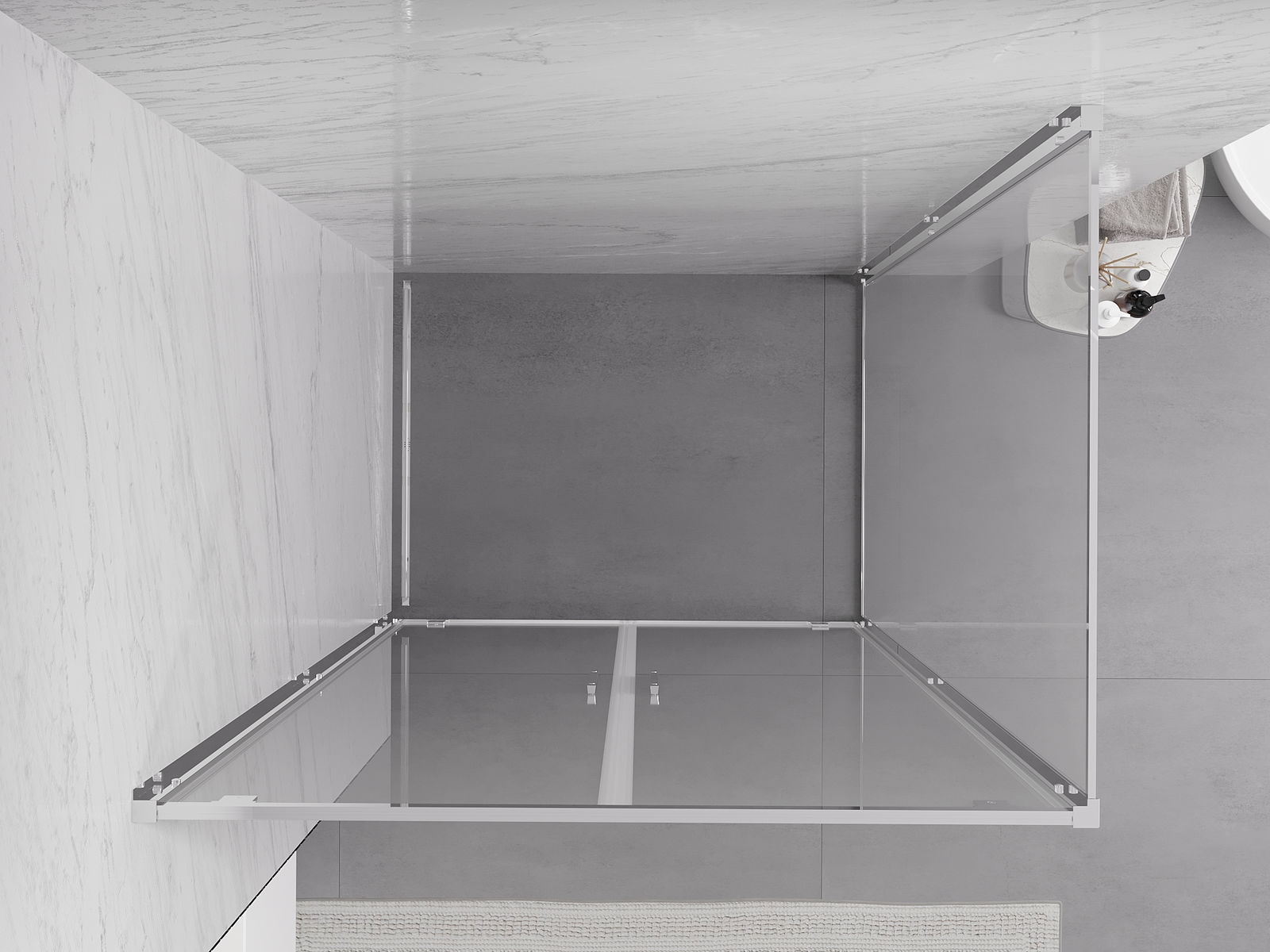 La poignée pratique et confortable est fabriquée en métal durable et résistant. Sa forme à la mode, combinée à une finition assortie à la couleur des profilés, donne à l'ensemble un aspect moderne et stylé, soulignant l'esthétique de chaque salle de bain.