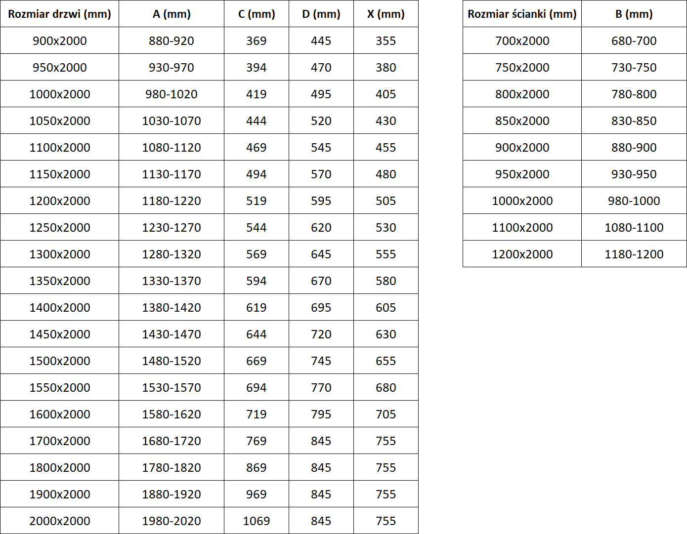 Taille: 200x75 cm (portes 200 cm, paroi 75 cm)