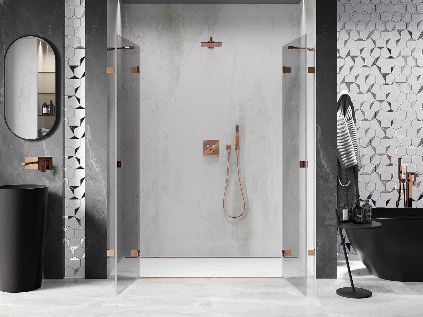 Mexen Lunar Duo portes de douche à battants 200 cm, transparent, or rose - 834D-200-000-60-00