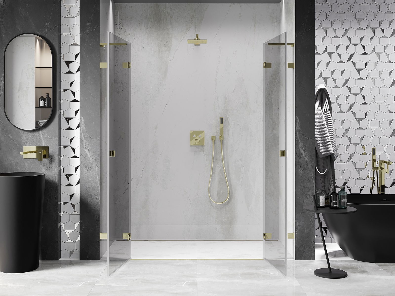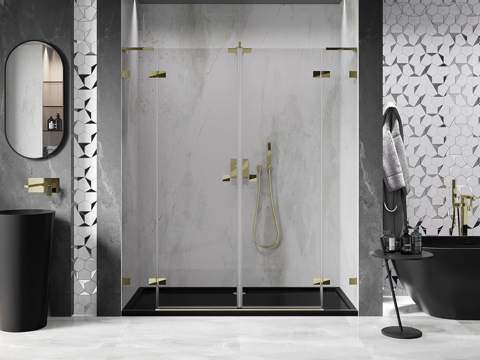 Mexen Lunar L Duo portes de douche pivotantes 180 cm, transparentes, dorées - 834DL-180-000-50-00