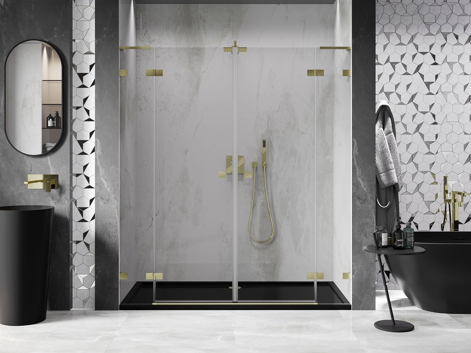 Mexen Lunar L Double porte de douche pivotante 170 cm, transparent, or brossé - 834DL-170-000-55-00