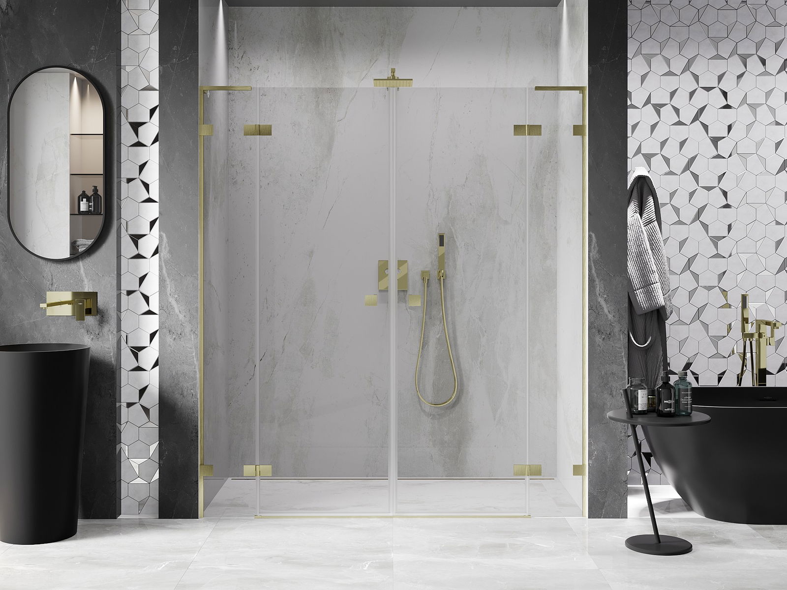 Mexen Lunar L Duo portes de douche pivotantes 180 cm, transparentes, or brossé - 834DL-180-000-55-00