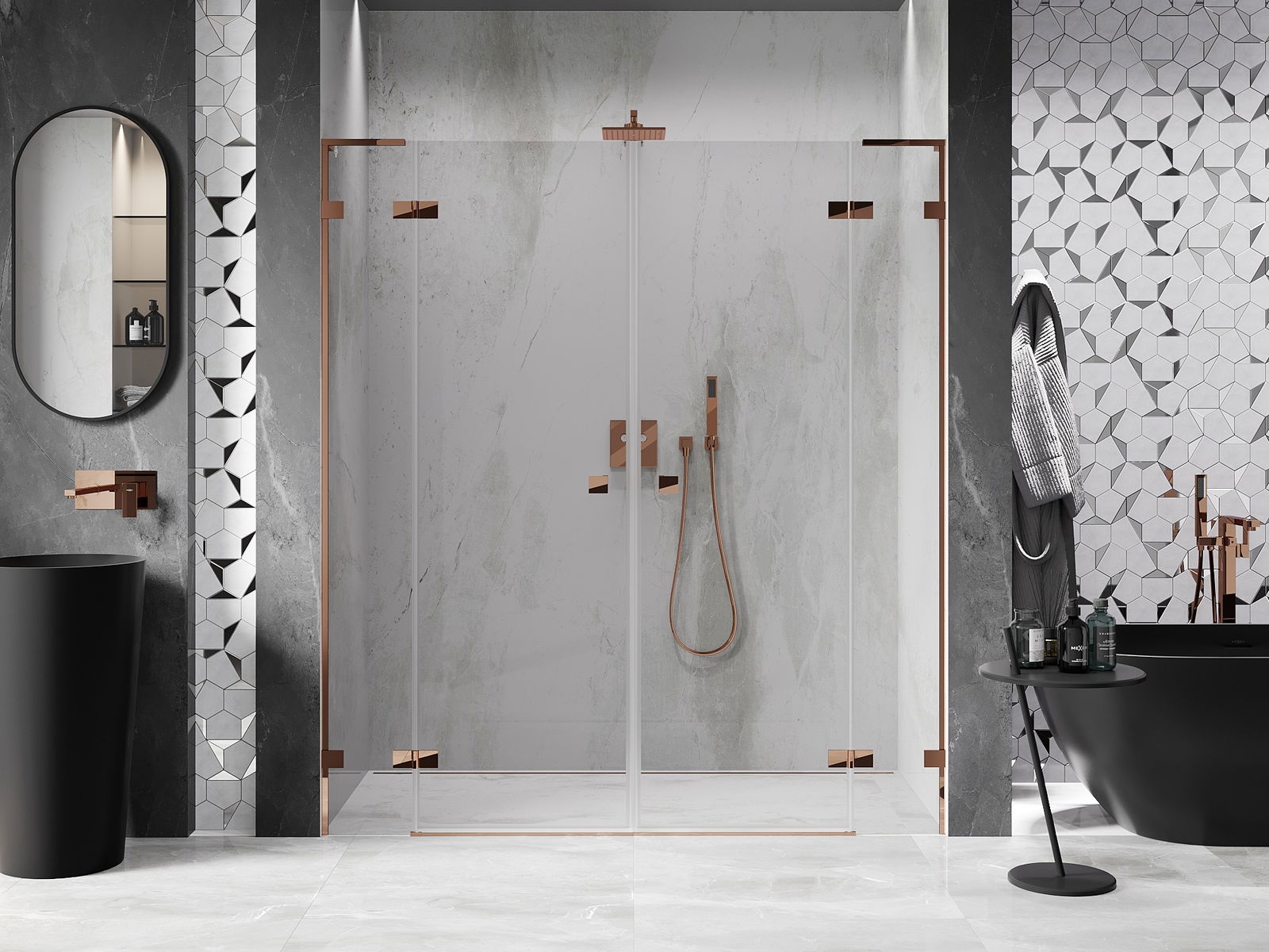 Mexen Lunar L Duo portes de douche battantes 190 cm, transparent, or rose - 834DL-190-000-60-00