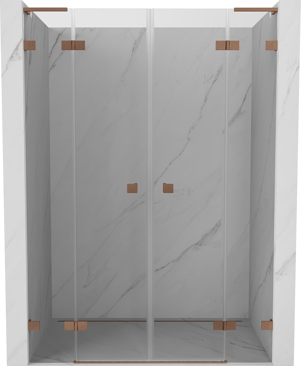 Mexen Lunar L Duo porte de douche battante 140 cm, transparent, cuivre brossé - 834DL-140-000-65-00